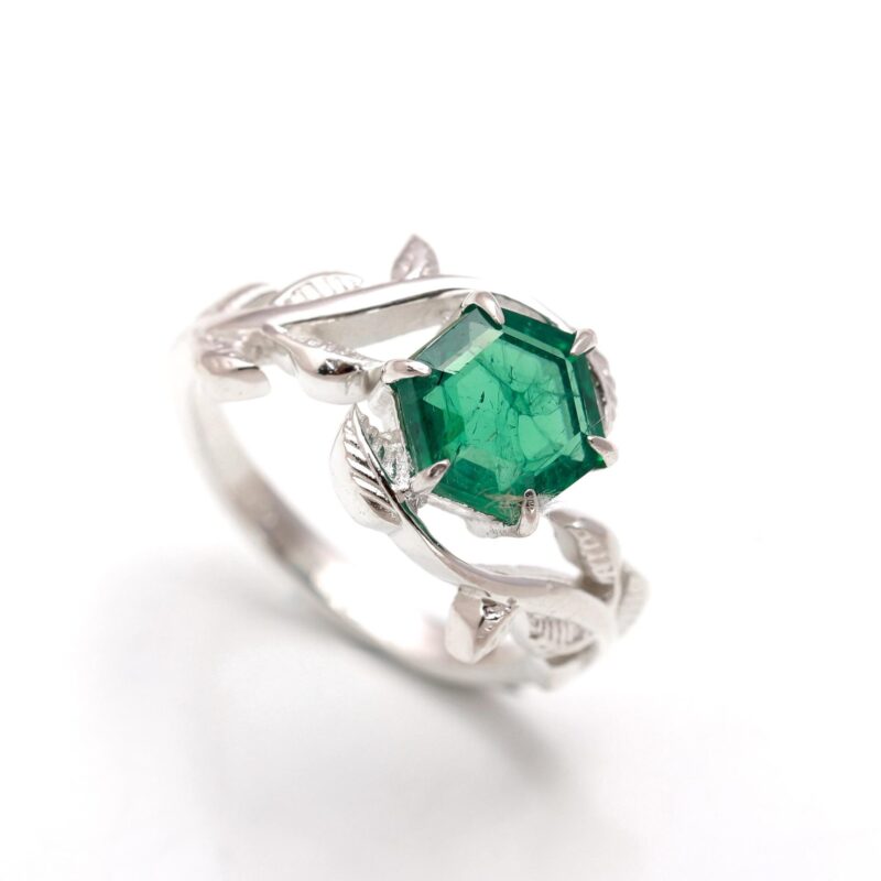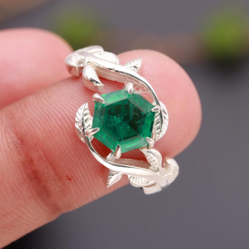 $34.99 – $555.00Price range: $34.99 through $555.00Natural Created Emerald Hexagon Leaf Design Ring, 925 Sterling Silver Handmade Jewelry, Delicate Ring, Green Stone Ring, Boho Birthday Gift