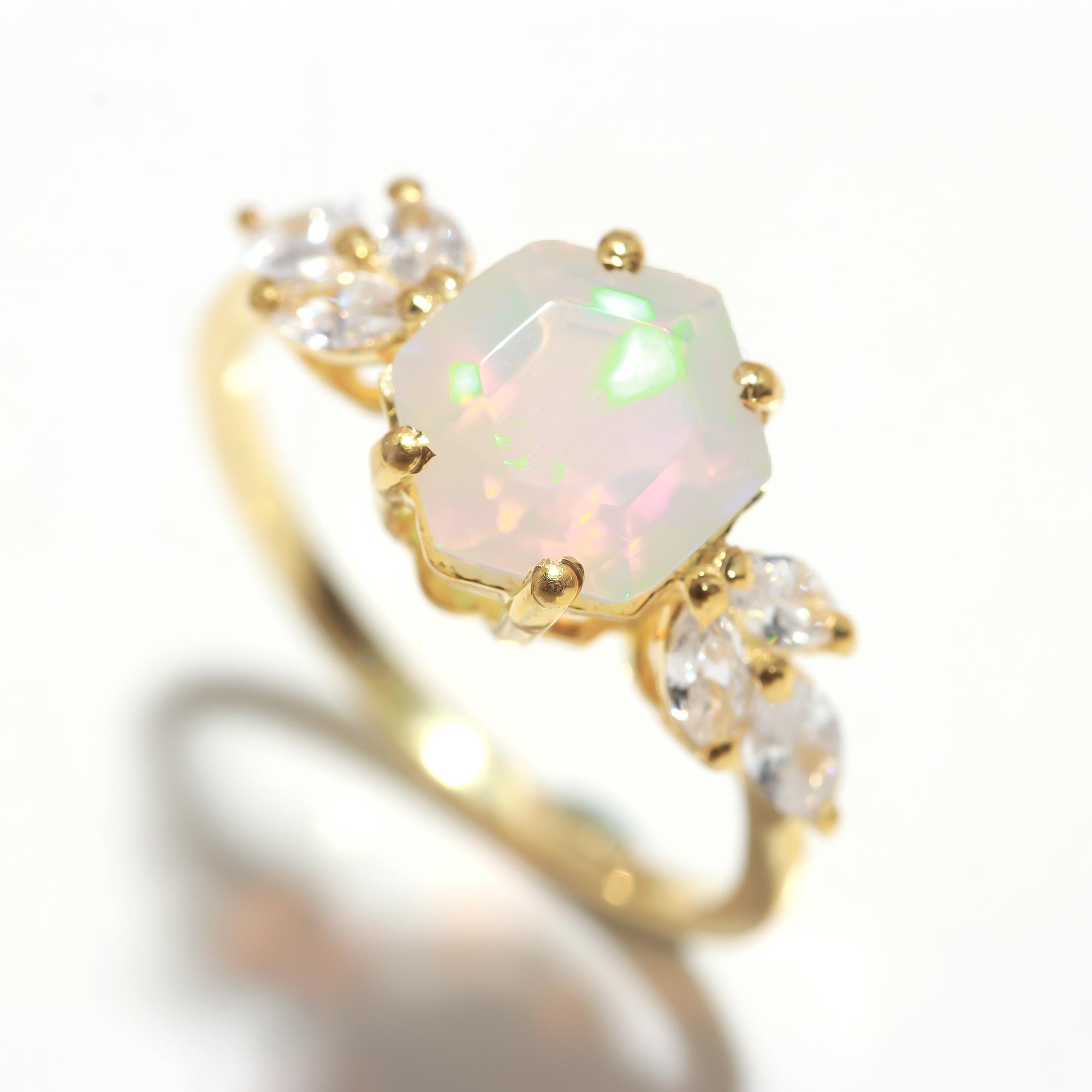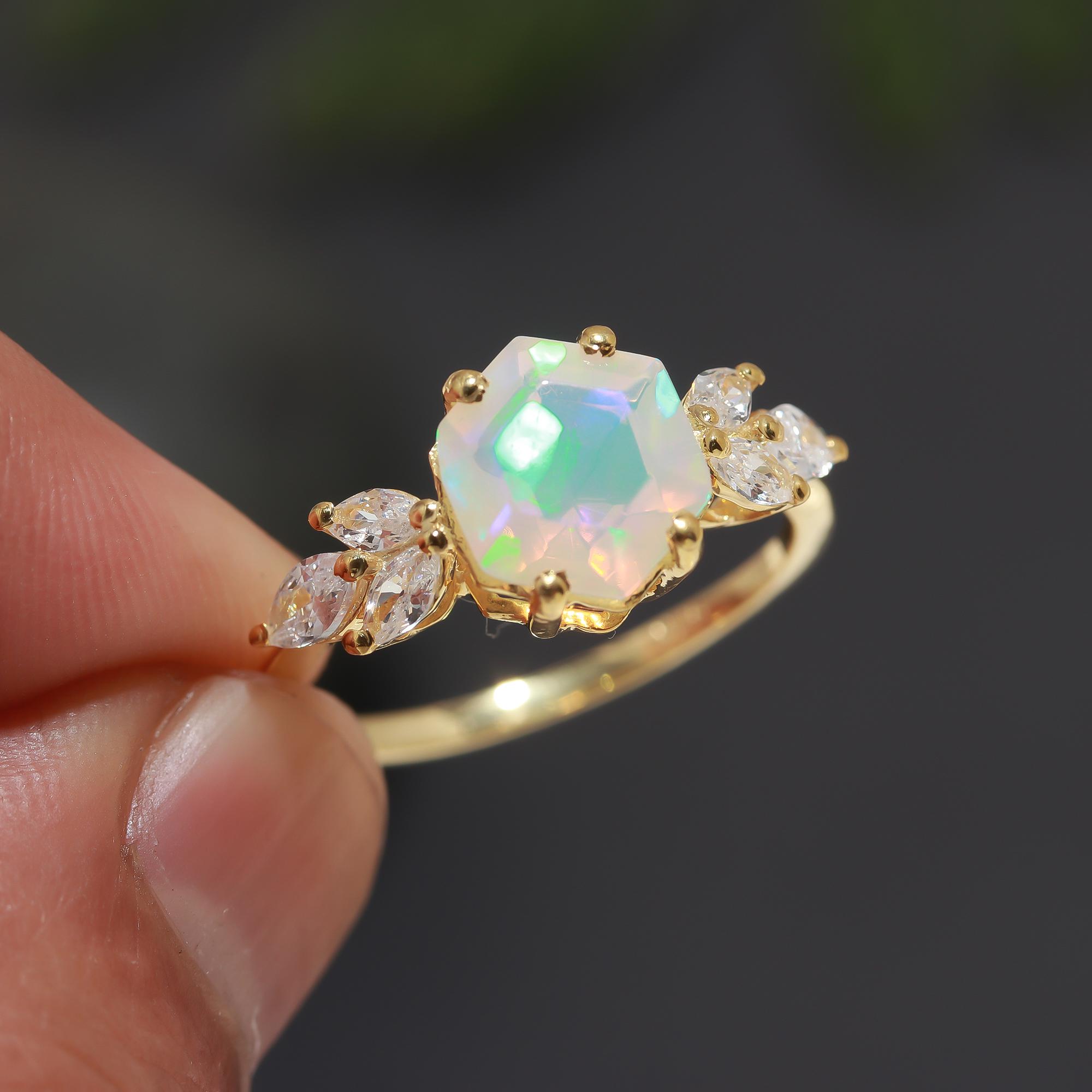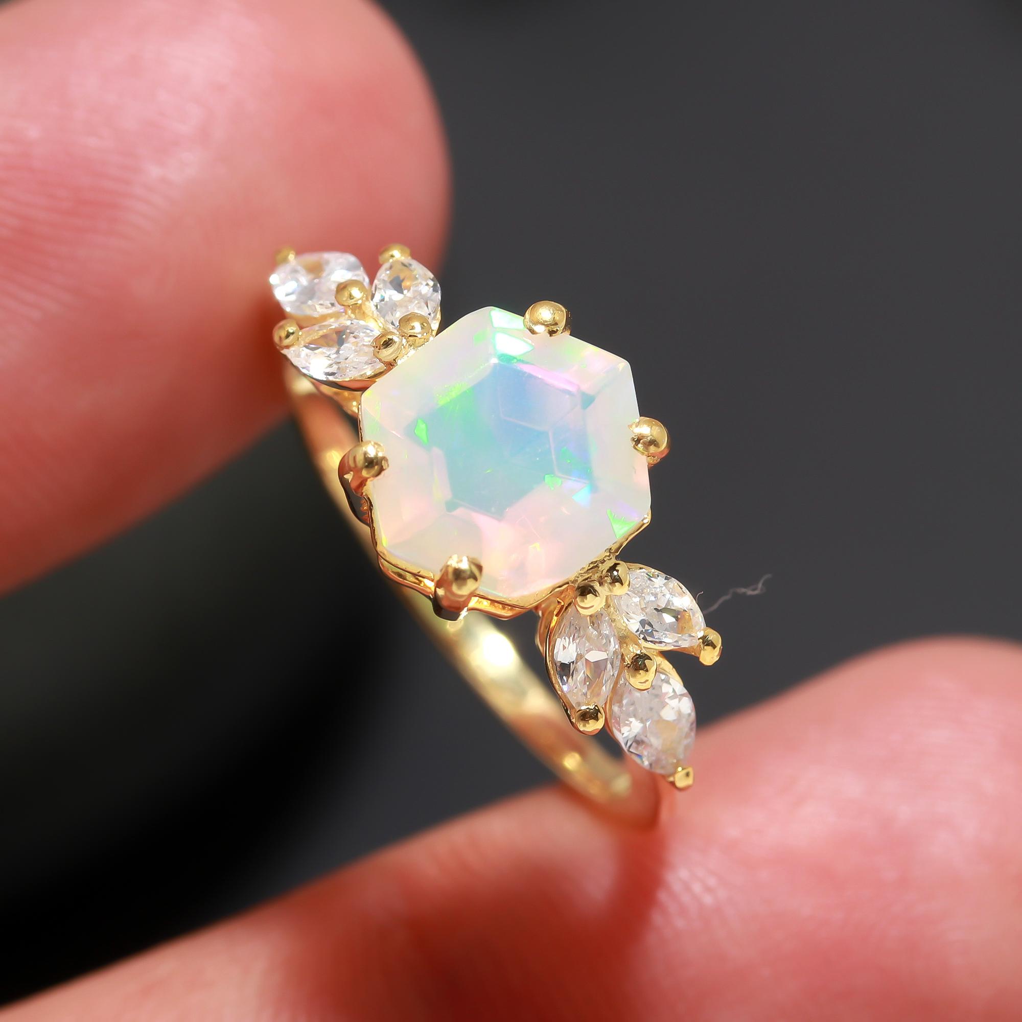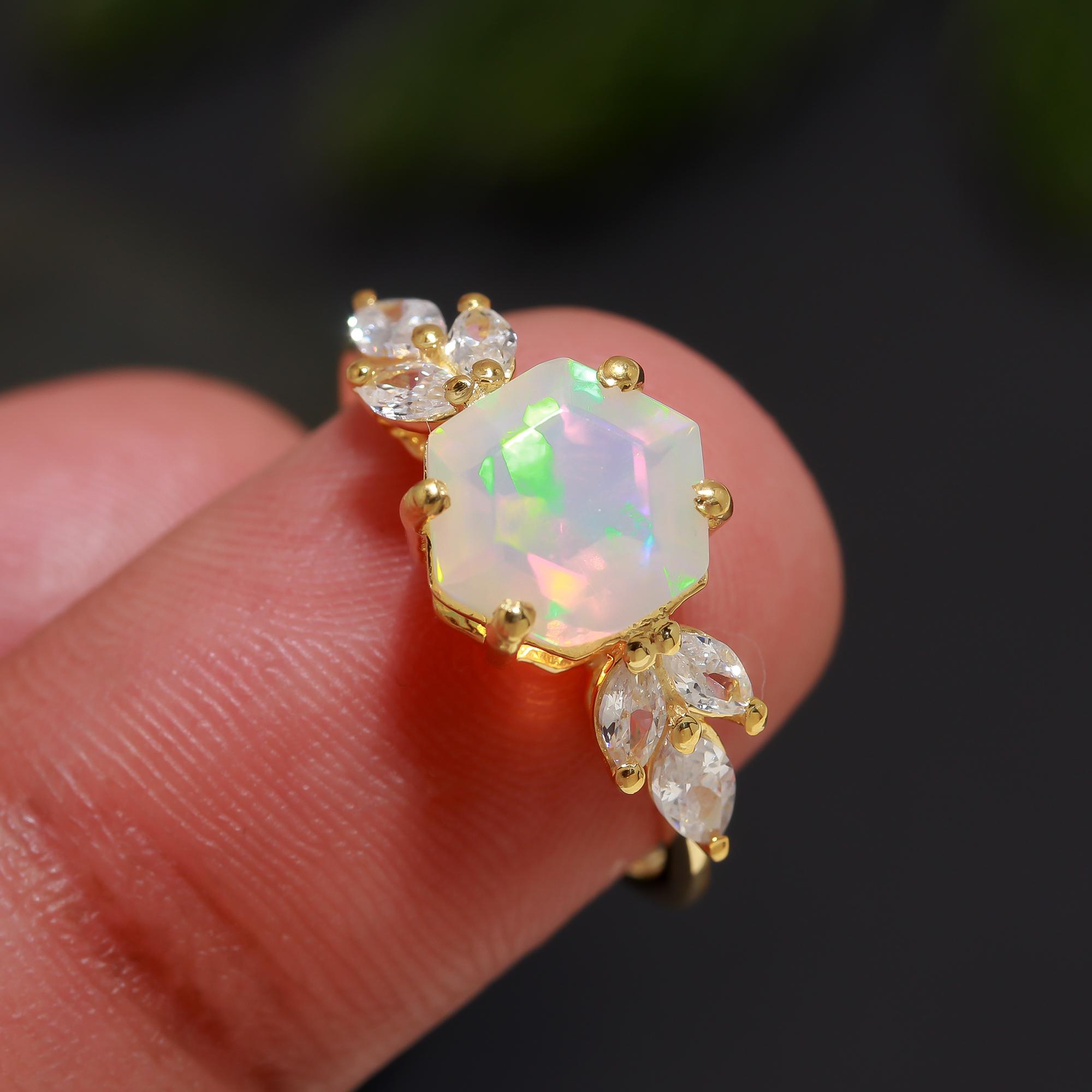 100% Natural Ethiopian Hexagon Shape Ring, 14K Gold Dainty Jewelry, minimalist Ring, Promise Ring, Vintage Ring, Boho Ring, Birthday Gift