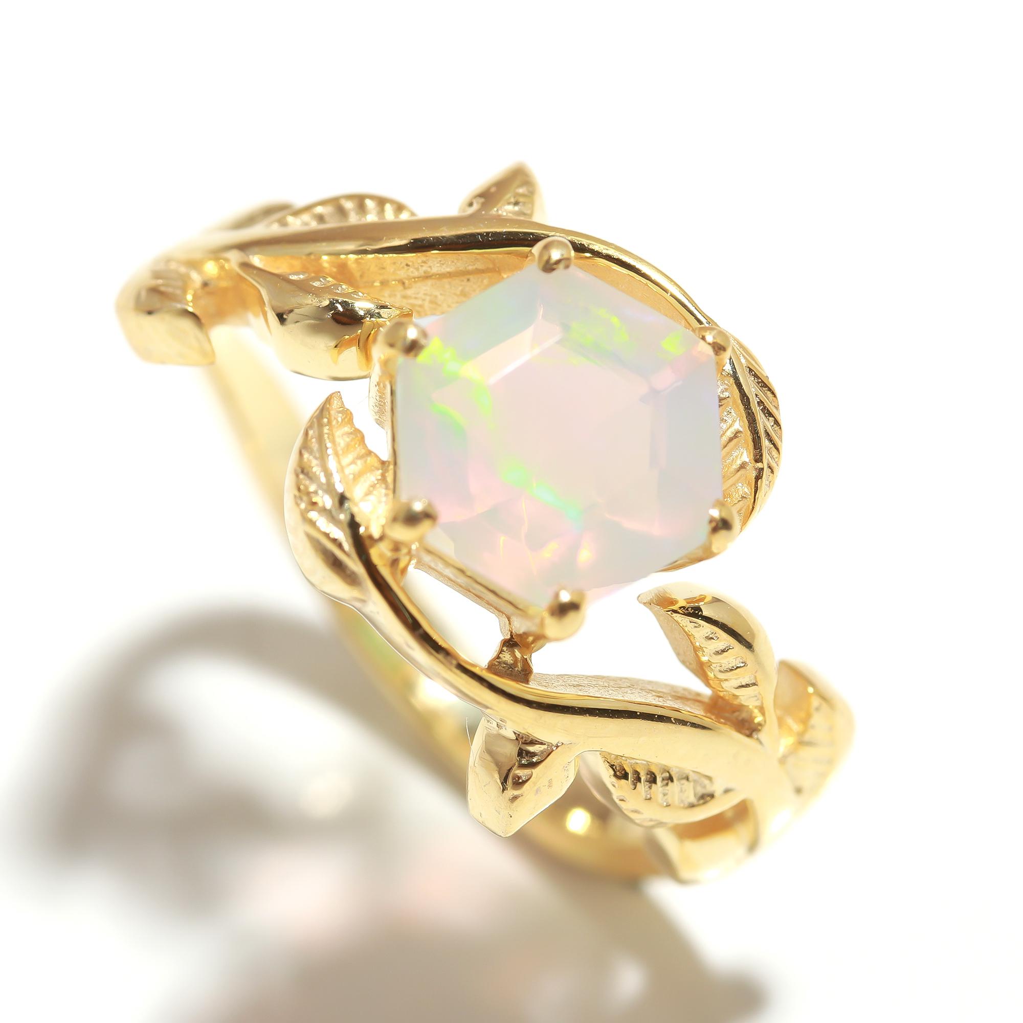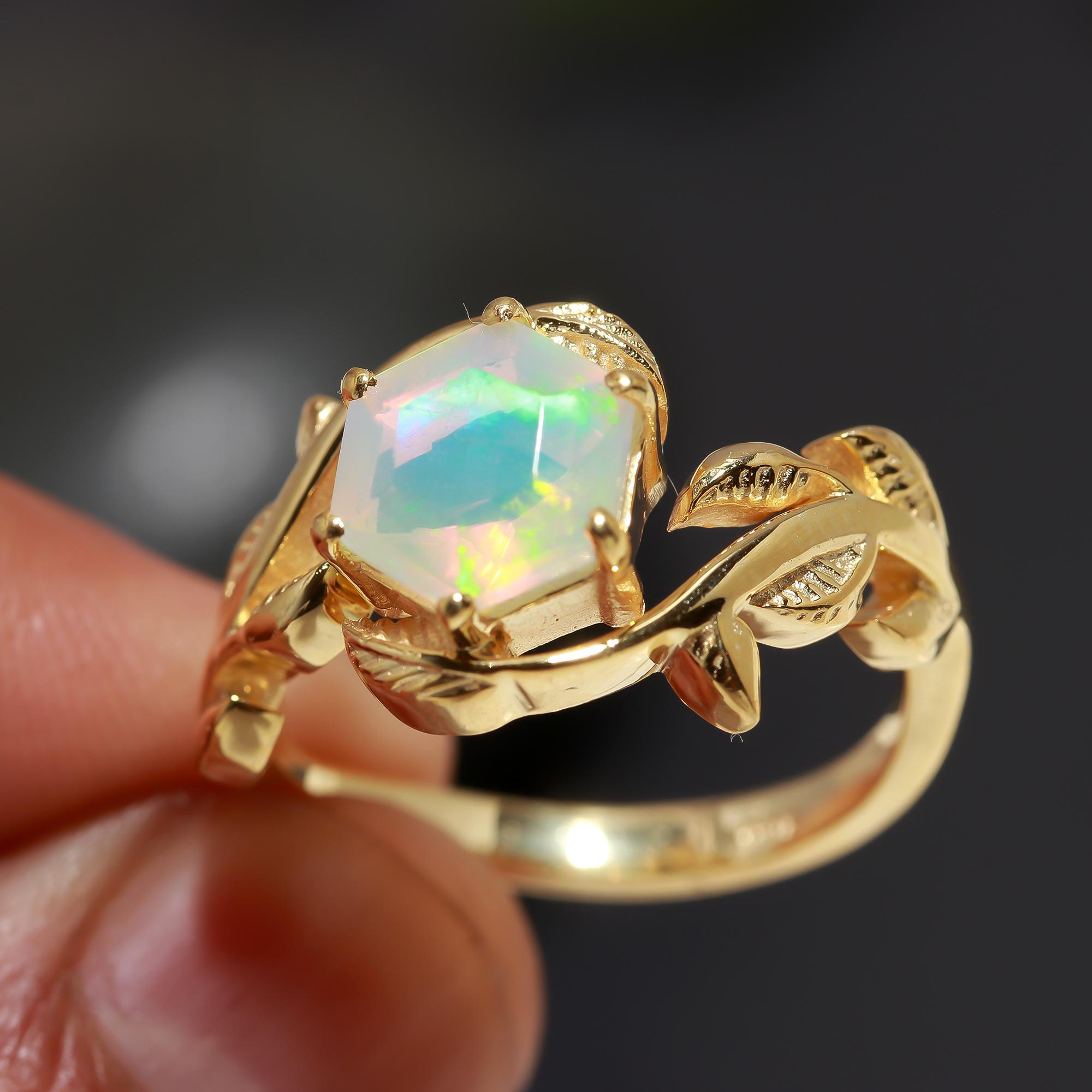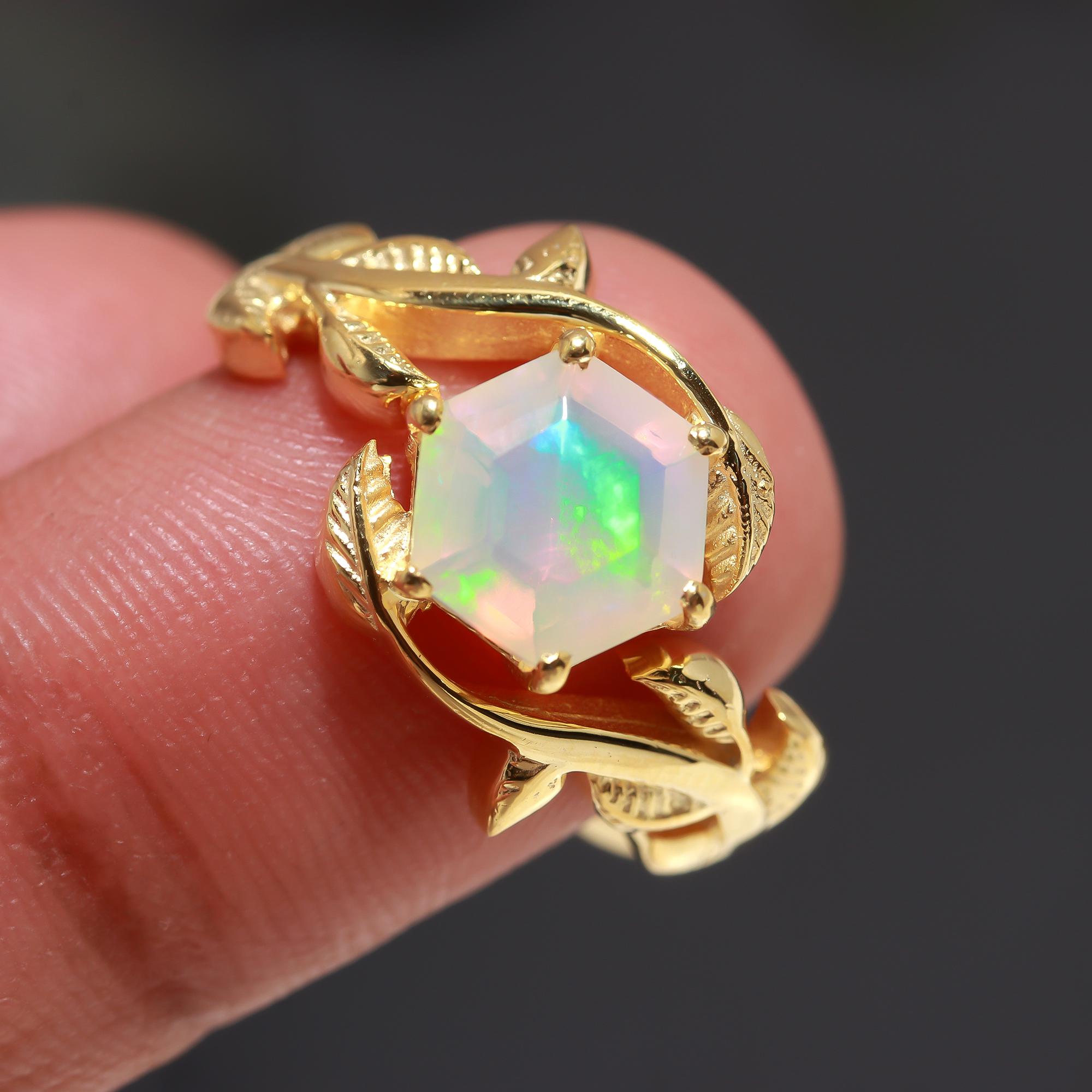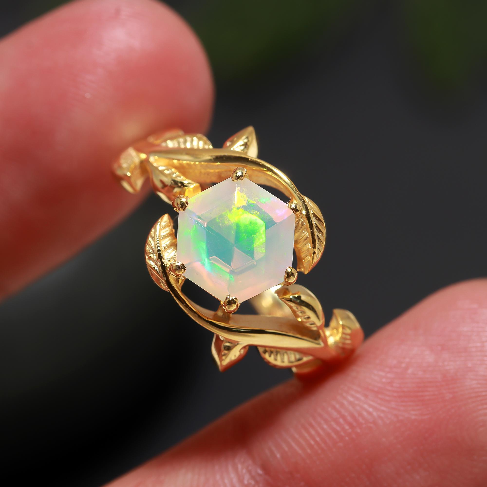 100% Natural Ethiopian Hexagon Shape Ring, 14K Gold Dainty Jewelry, minimalist Ring, Promise Ring, Vintage Ring, Leaf Ring, Birthday Gift
