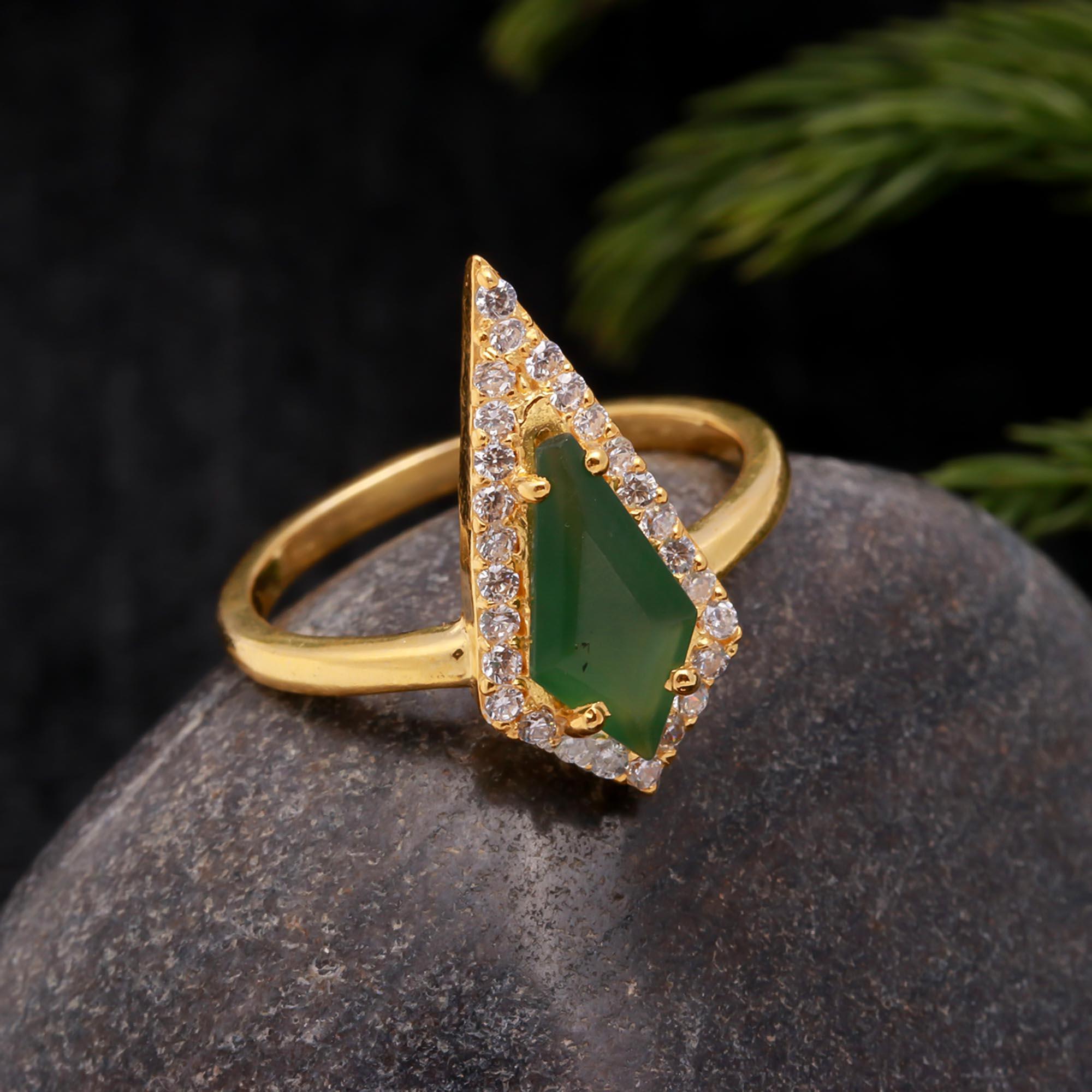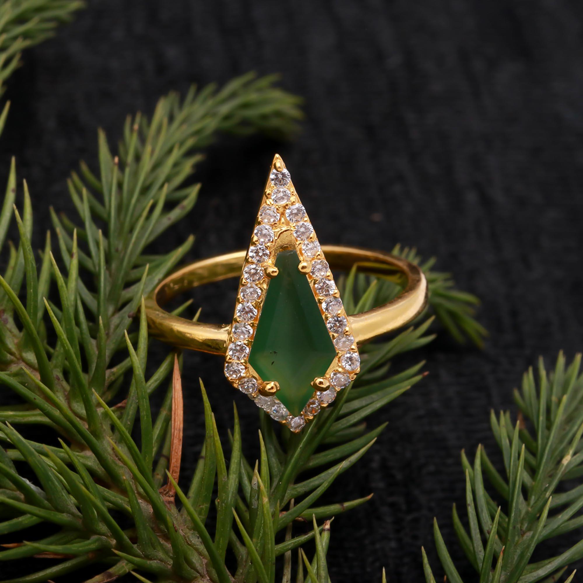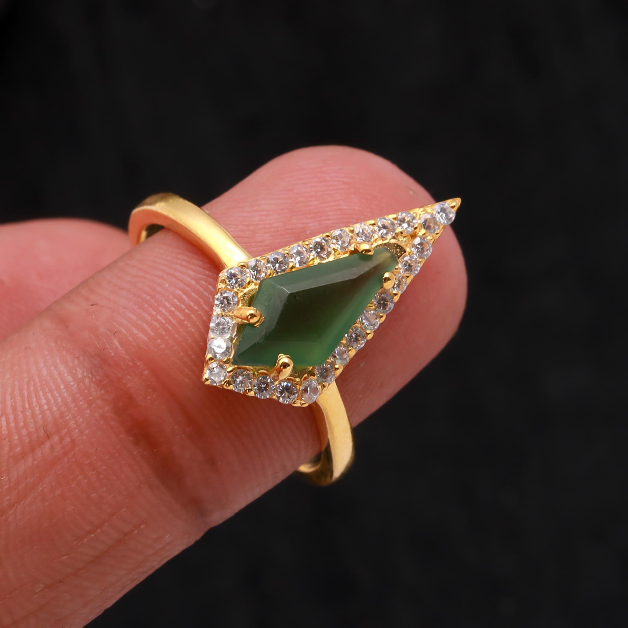 100% Natural Serpentine Kite Shape Ring, 14K Gold Handmade Jewelry, Vintage Ring, Engagement Ring, Delicate Ring, Dainty Ring, Birthday Gift