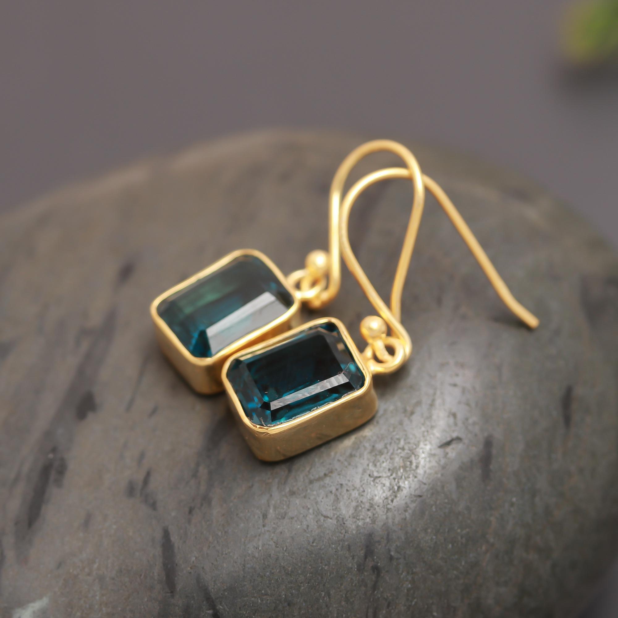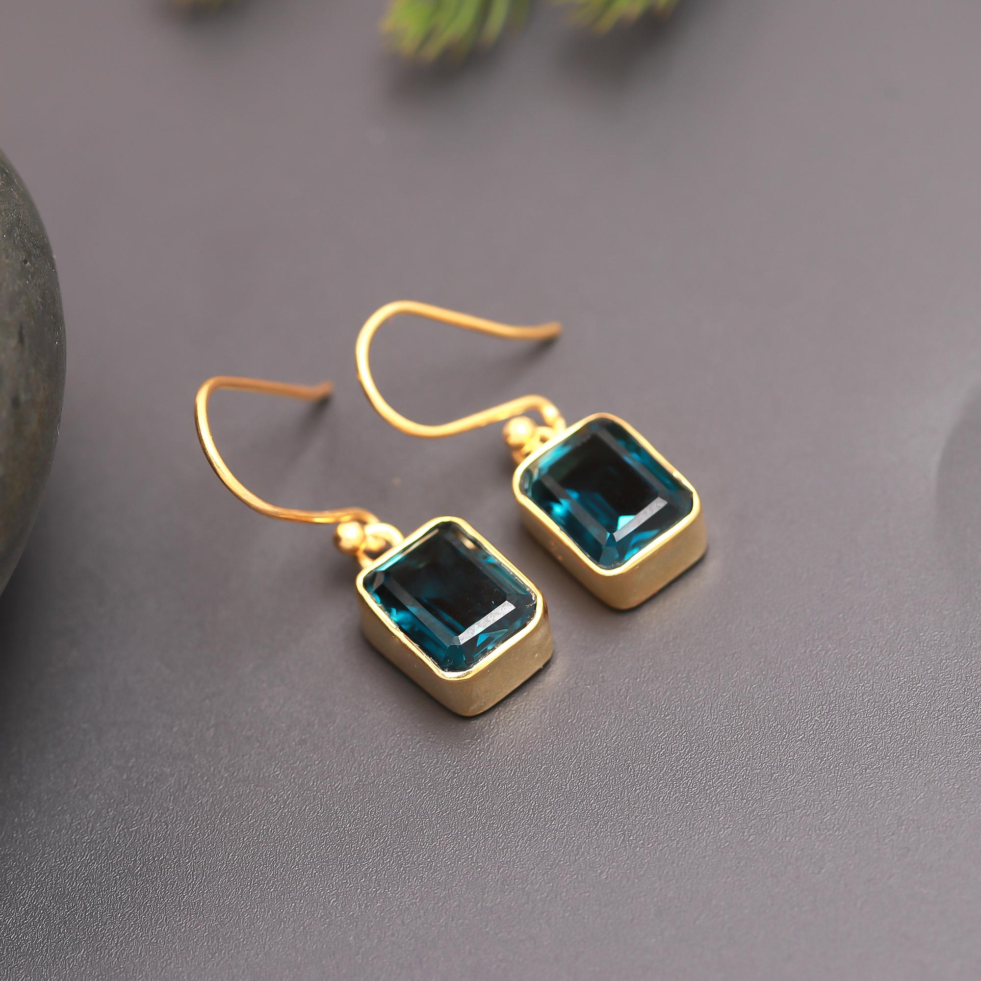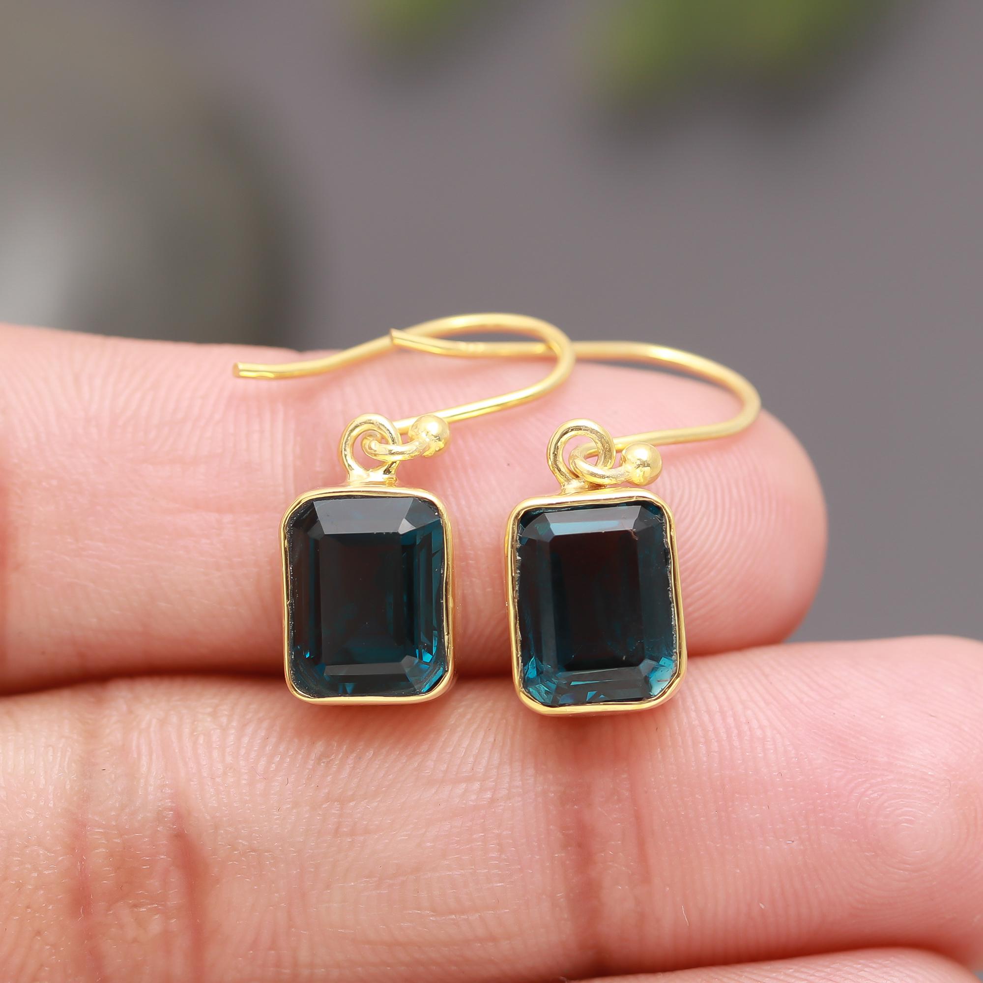 AAA Quality London Blue Topaz Octagon Earrings, 14K Gold Lightweight Jewelry, Charm Earrings, Boho Earrings, Dangle Earrings, Birthday Gift