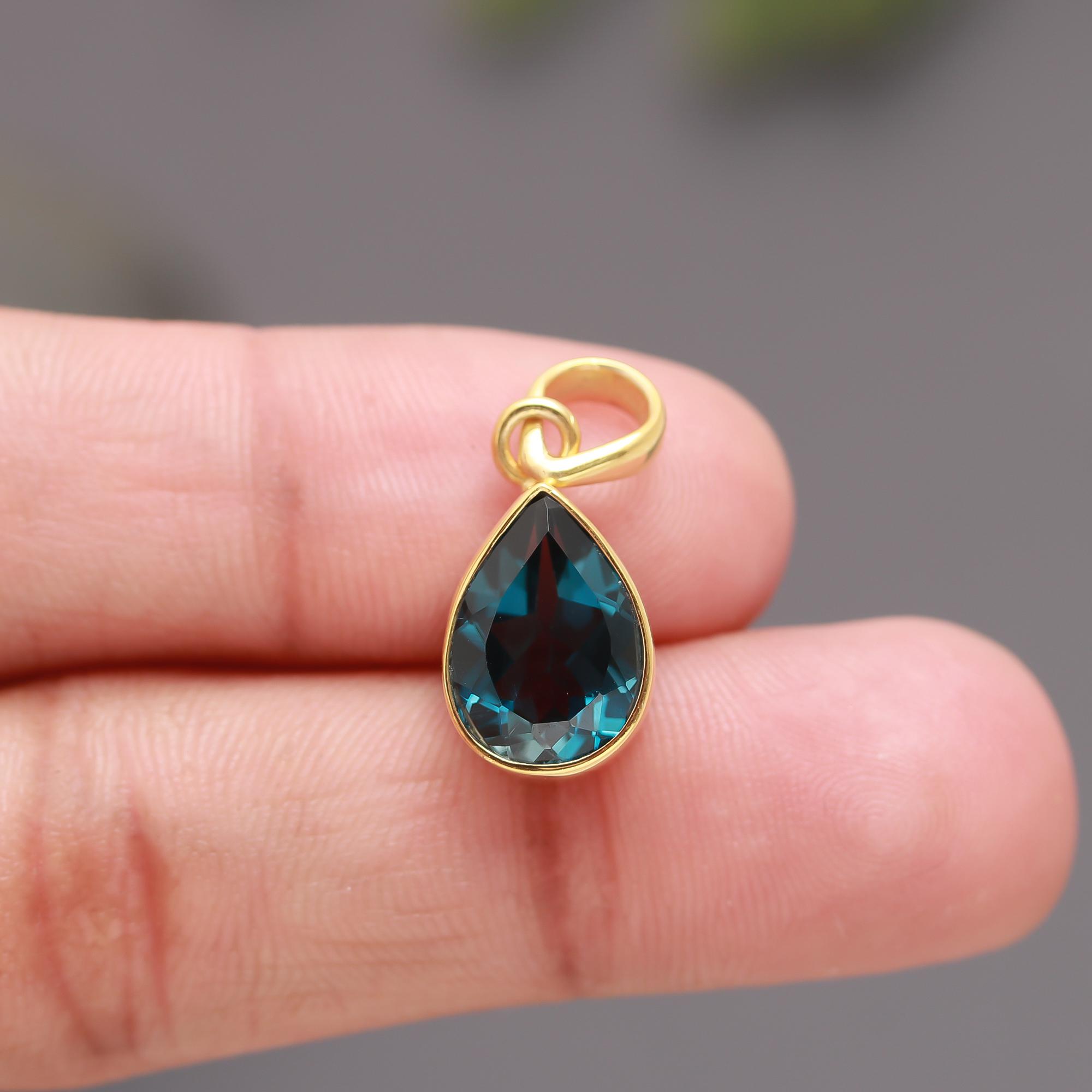 AAA Quality London Blue Topaz Pear Pendant, 14K Gold Lightweight Jewelry, Elegant Pendant, Delicate Pendant, Boho Necklace, Birthday Gift
