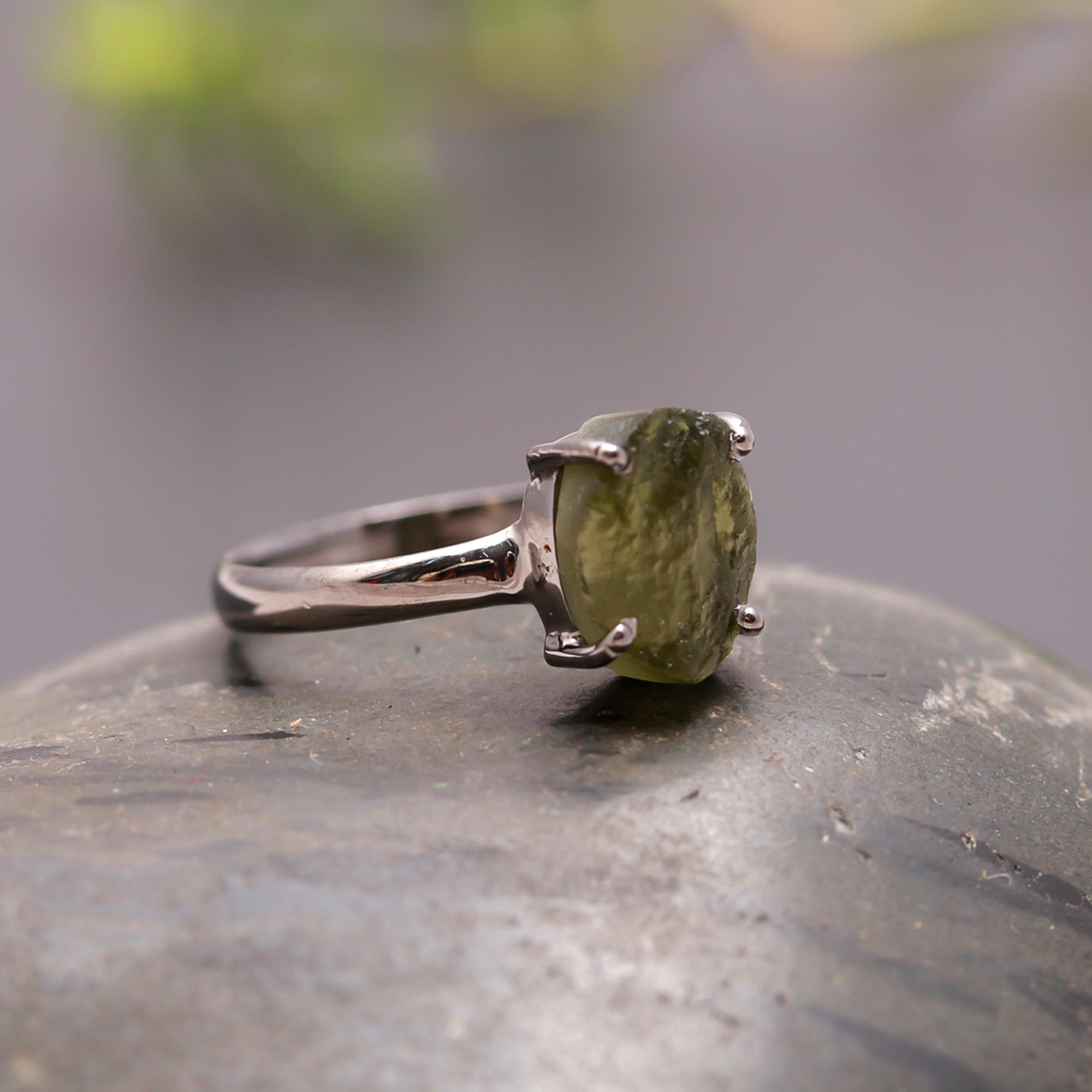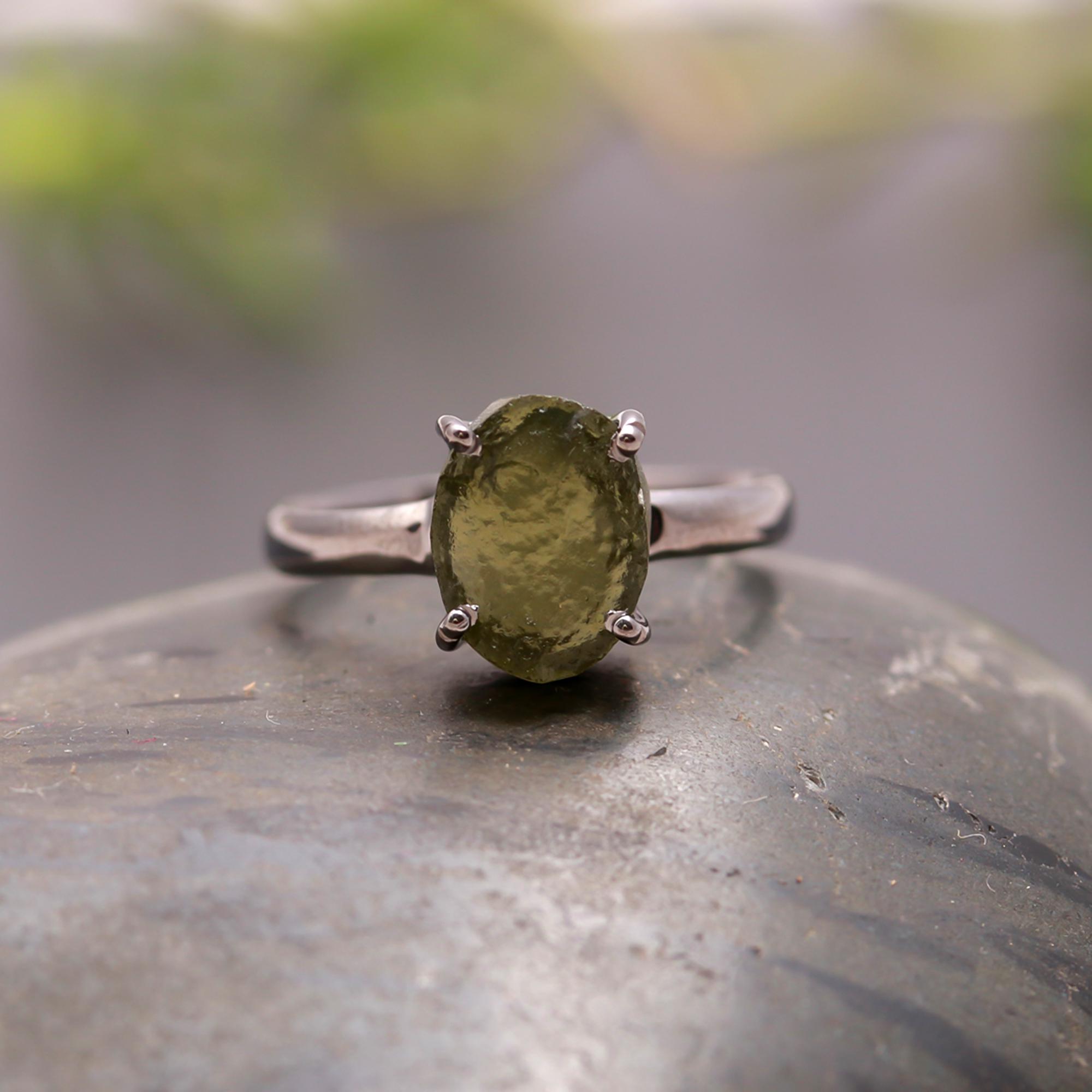 Moldavite Oval Shape Statement Ring 925 Sterling Silver Black Oxidized Jewelry Promise Gift