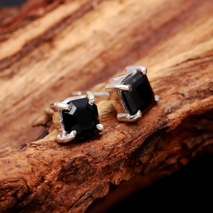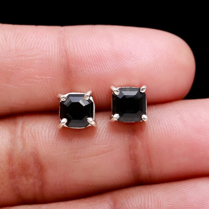 Natural Black Onyx Minimalist Octagon Stud Earrings 925 Sterling Silver Jewelry Birthday Gift