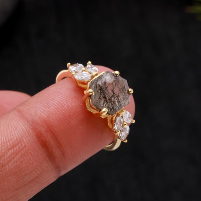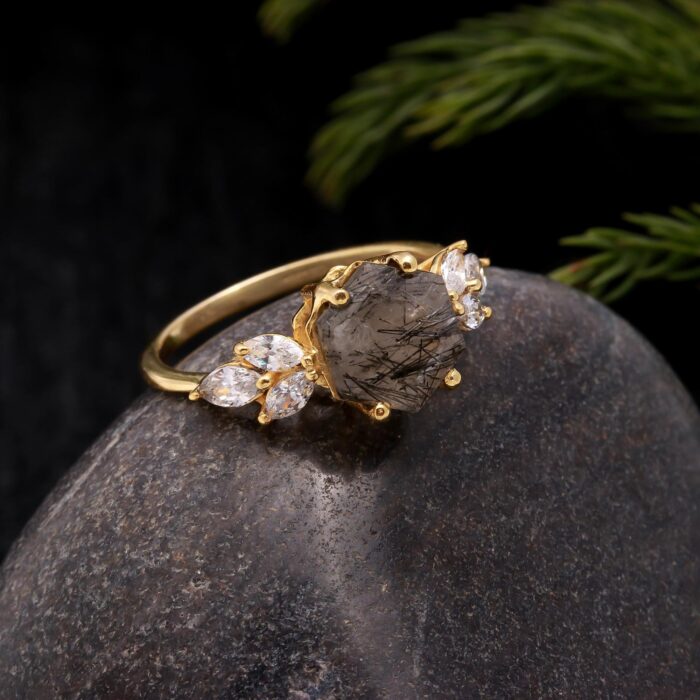 Be the first to review “Natural Black Rutile Quartz Hexagon Engagement Ring 14k Gold Birthstone Jewelry Wedding Gift” Cancel reply