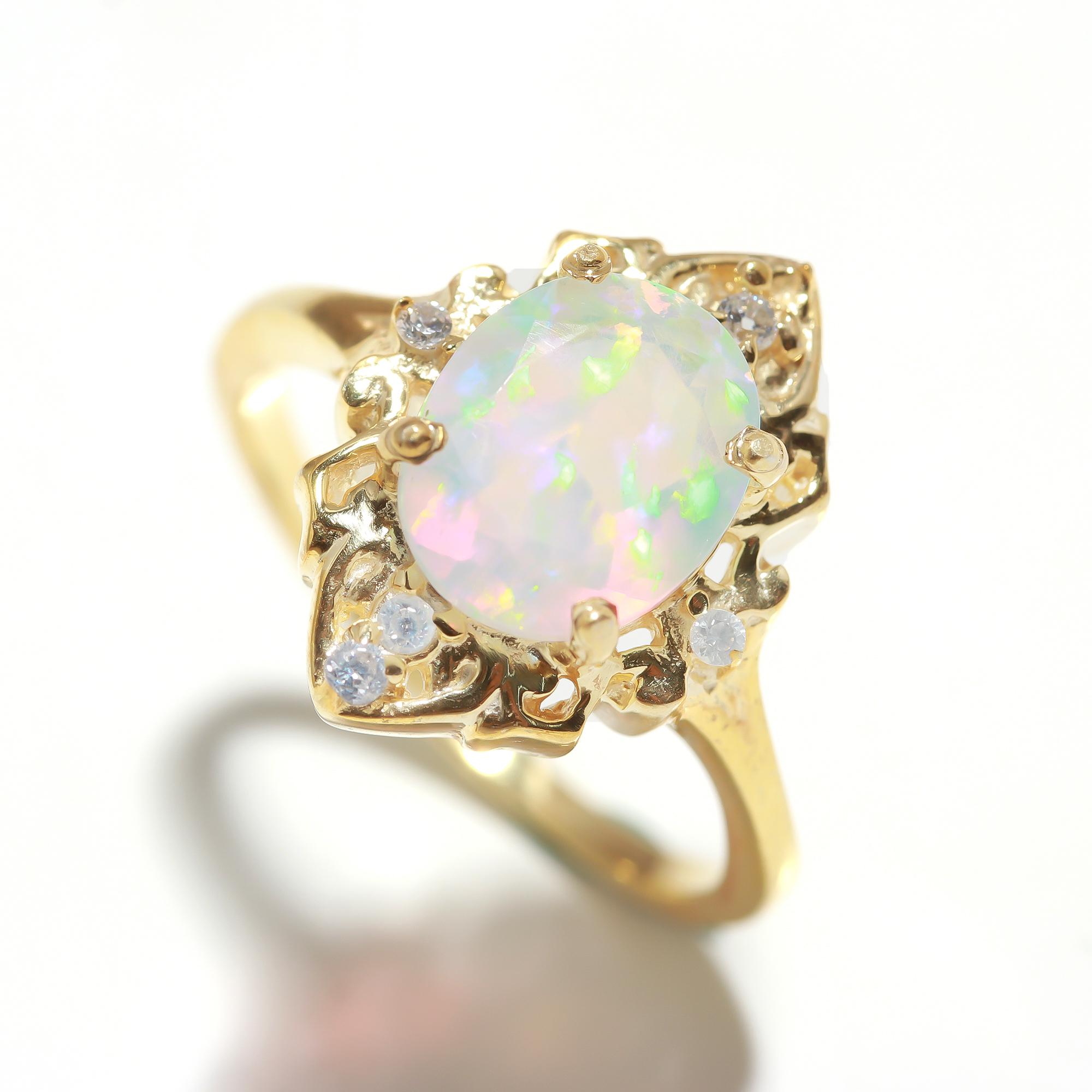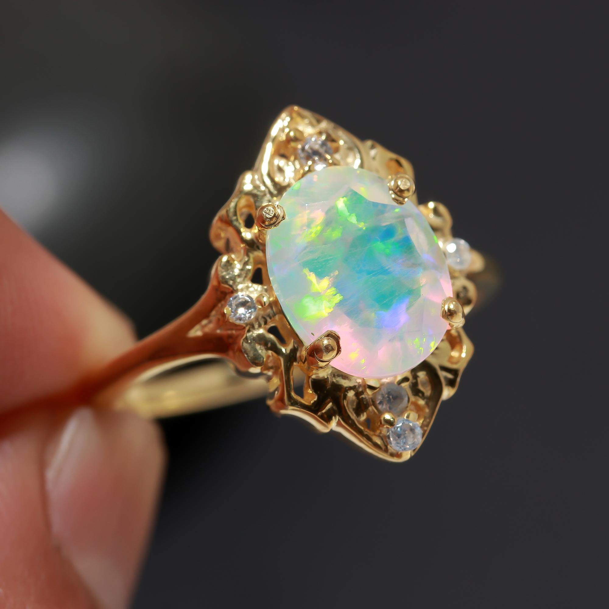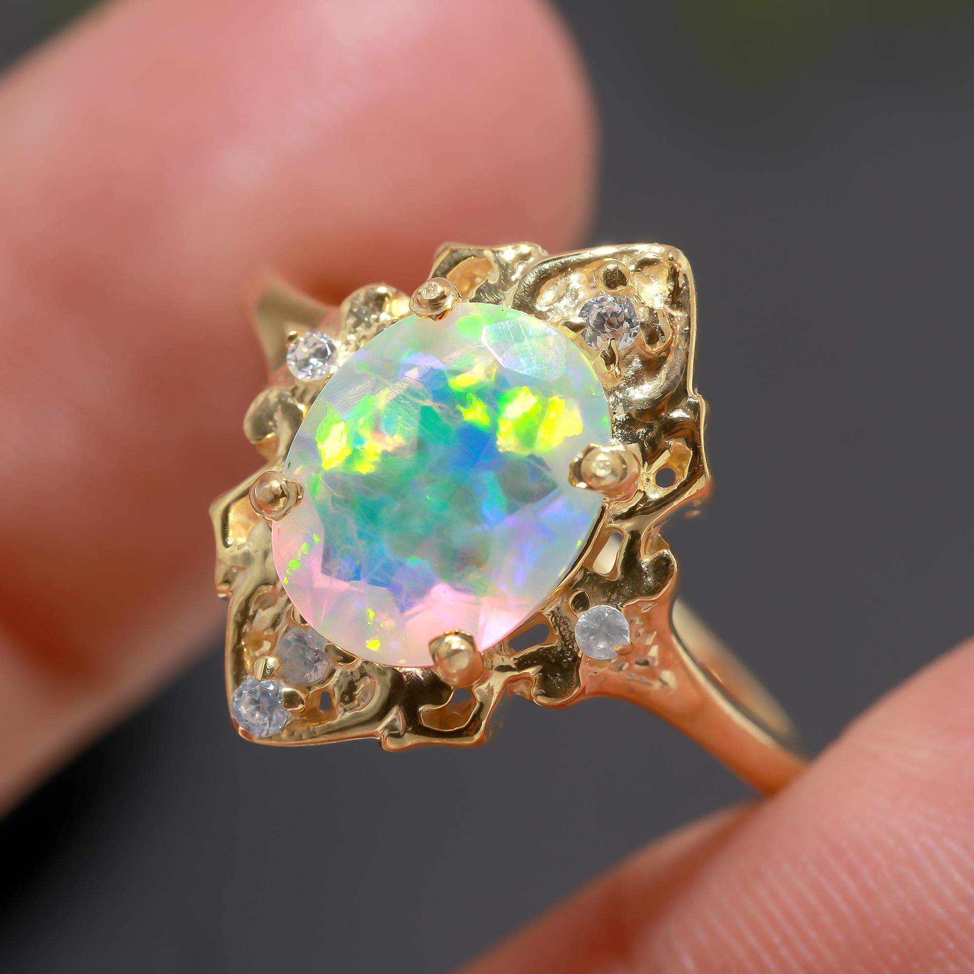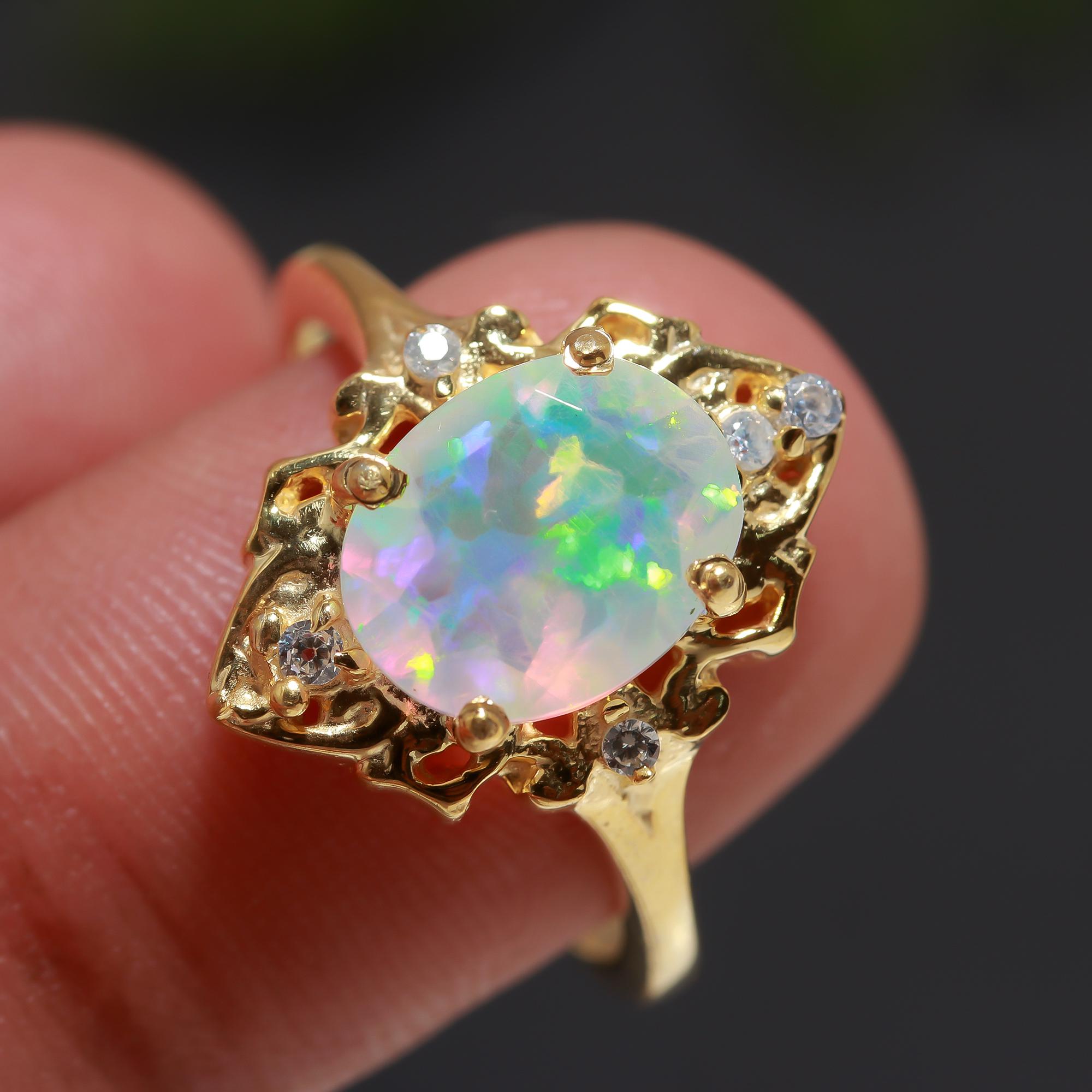 Natural Ethiopian Opal Oval Ring, 14K Gold Chunky Jewelry, Engagement Ring, Promise Ring, Solitaire Ring, Boho Ring, Birthday Gift