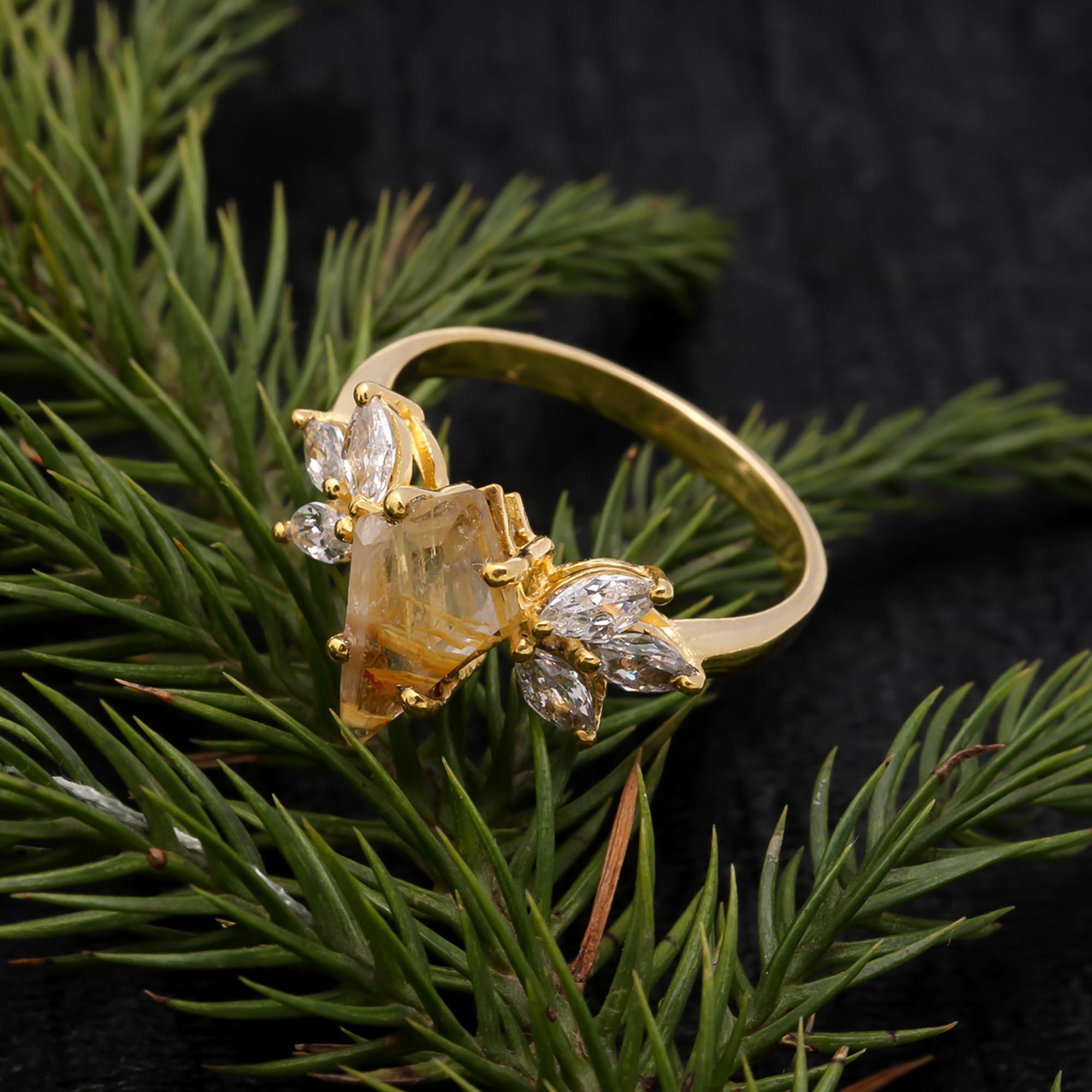 Natural Golden Rutile Quartz Kite Shape Ring, 14K Gold Lightweight Jewelry, Handmade Ring, Vintage Ring, Engagement Ring, Mothers Day Gift