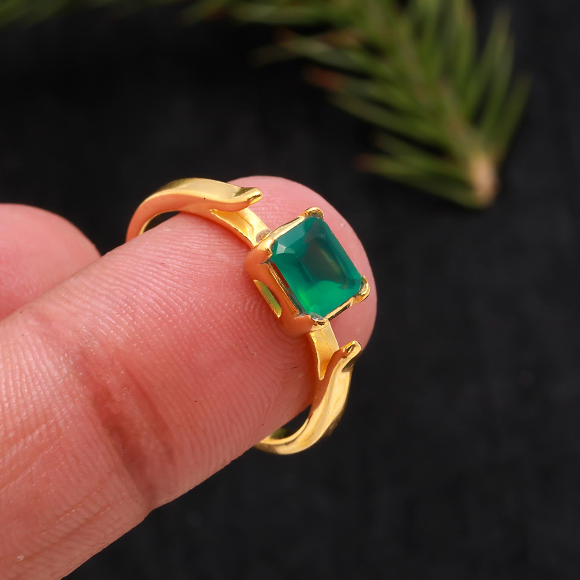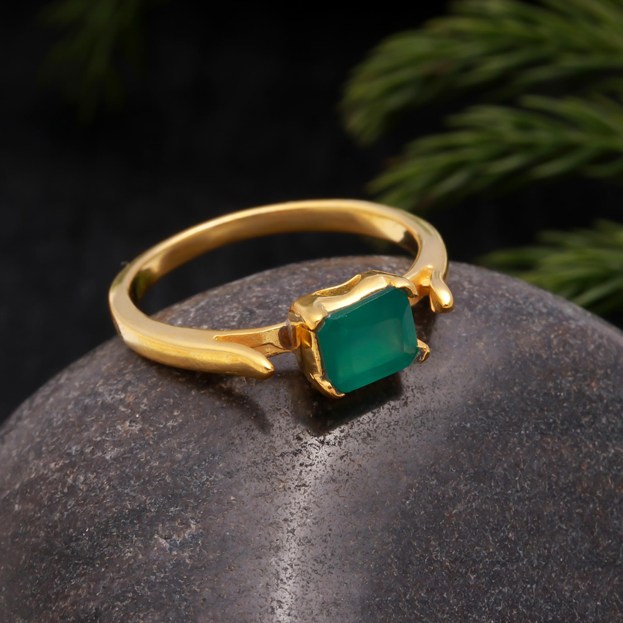 Natural Green Onyx Statement Ring, 14k Gold Minimalist Jewelry, Octagon Shape Ring, Healing Crystal Ring, Halloween Gift, Boho Wedding Gift,