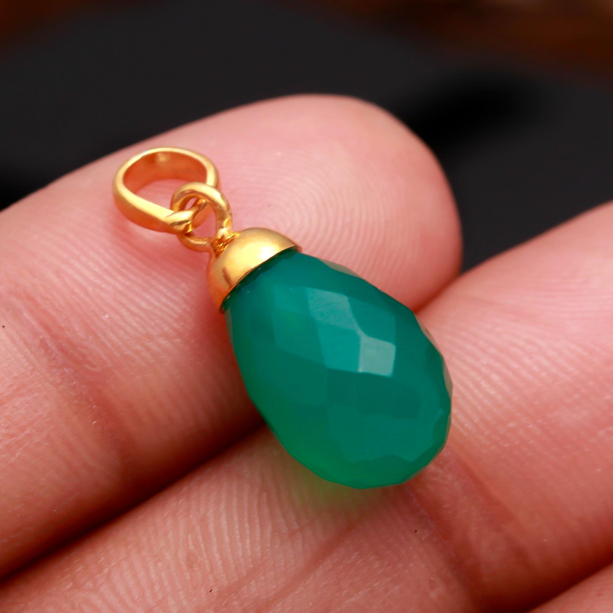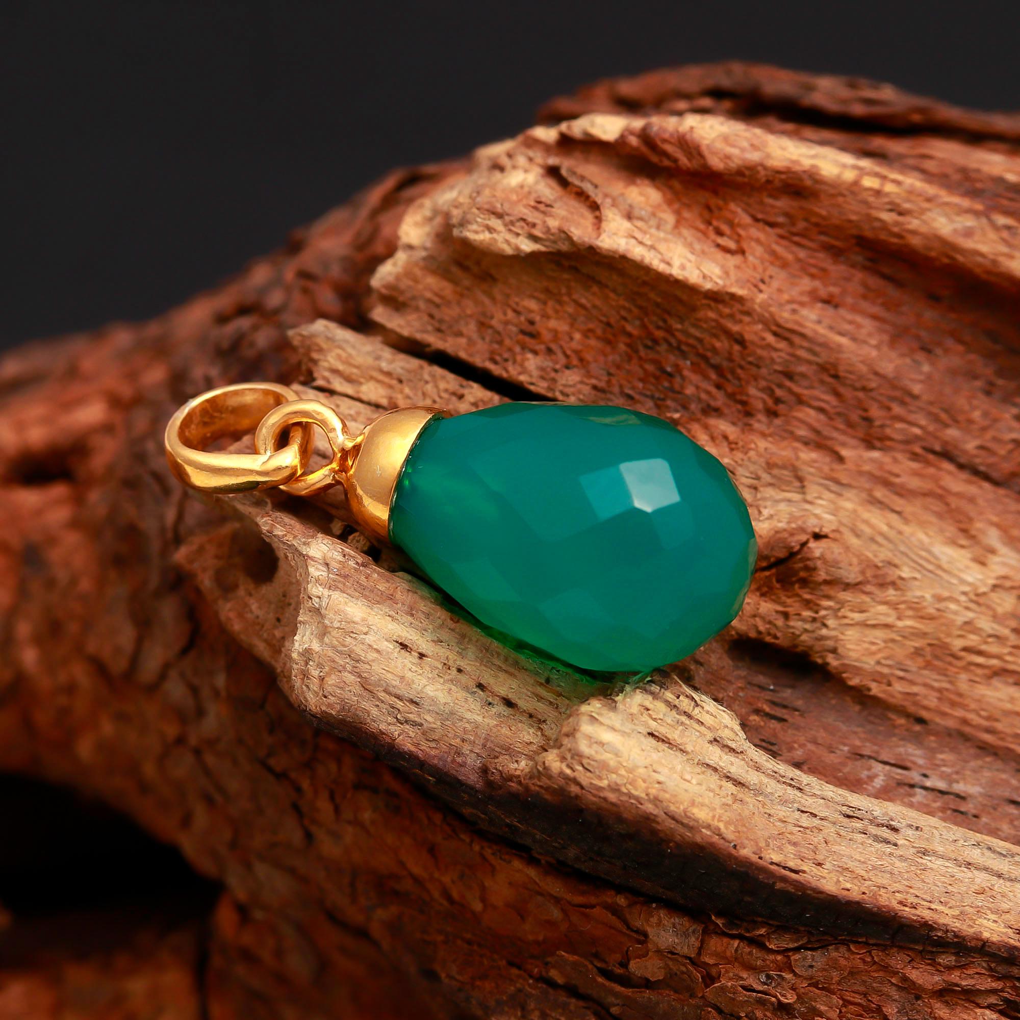 Natural Green Onyx Teardrop Birthstone Pendant Statement Gold Jewelry