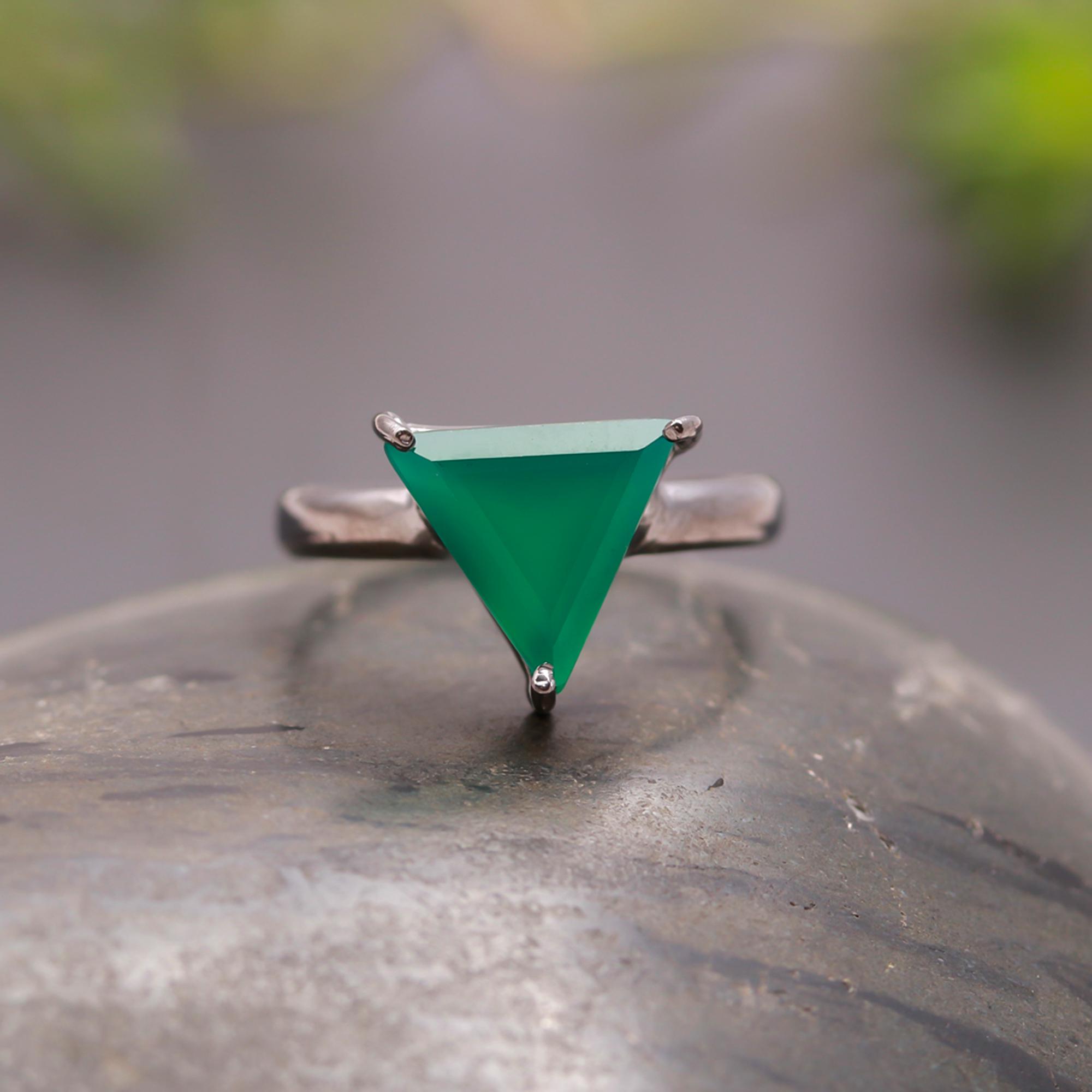 Natural Green Onyx Triangle Shape Ring 925 Sterling Silver Black Oxidized Jewelry Gift For Lovers