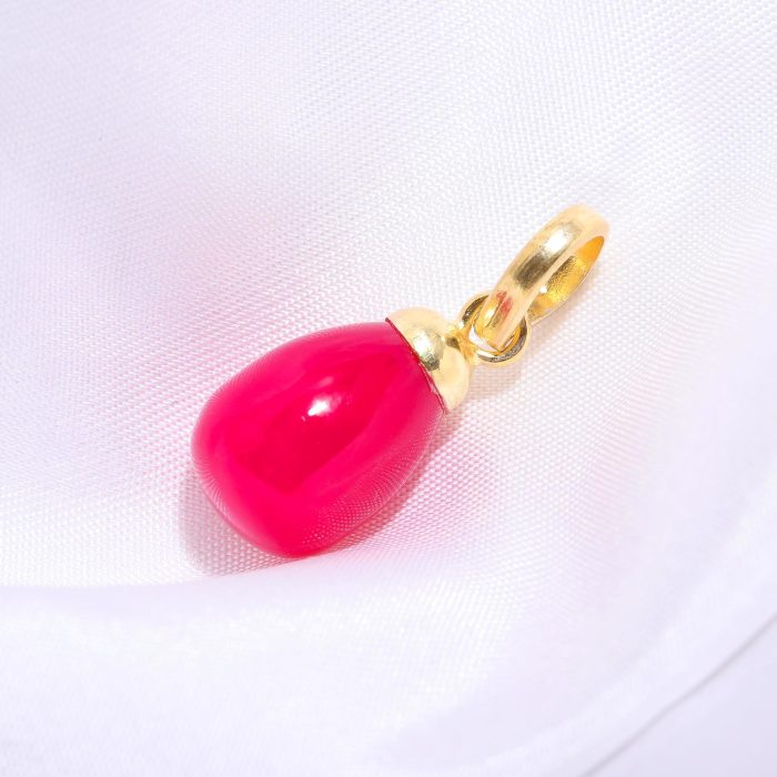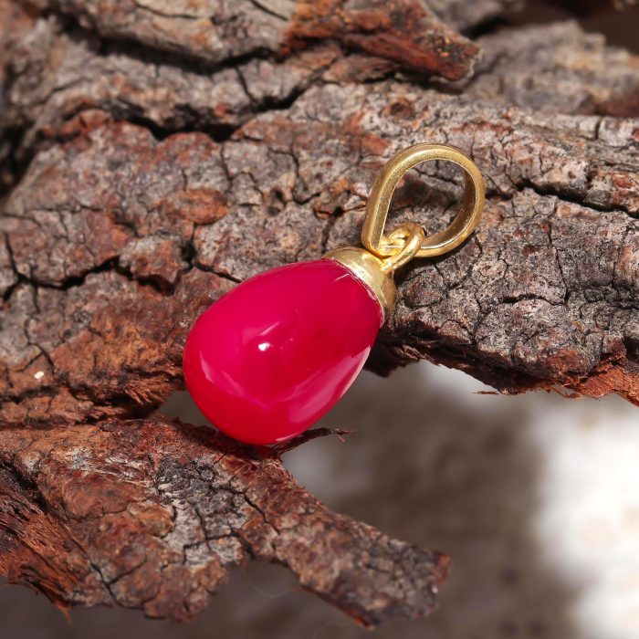 Natural Hot Pink Chalcedony Teardrop Pendant 14K Gold Wedding Jewelry Unique Gift