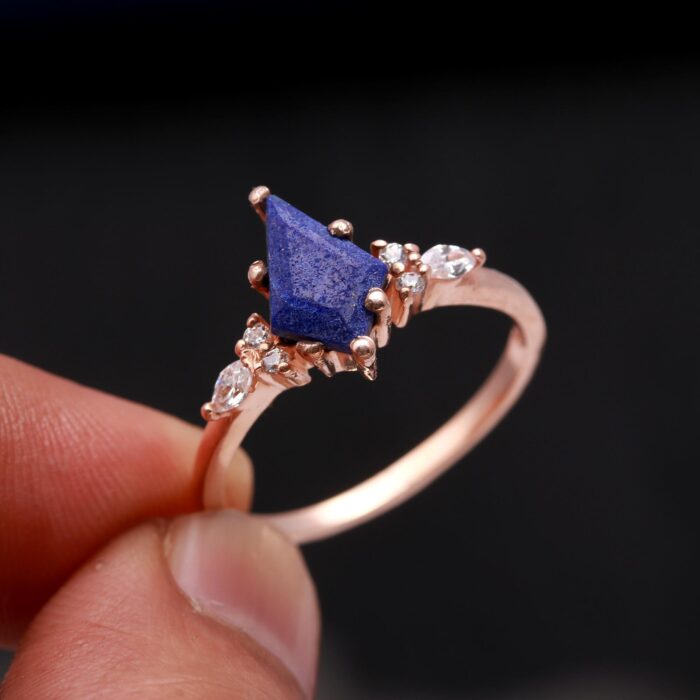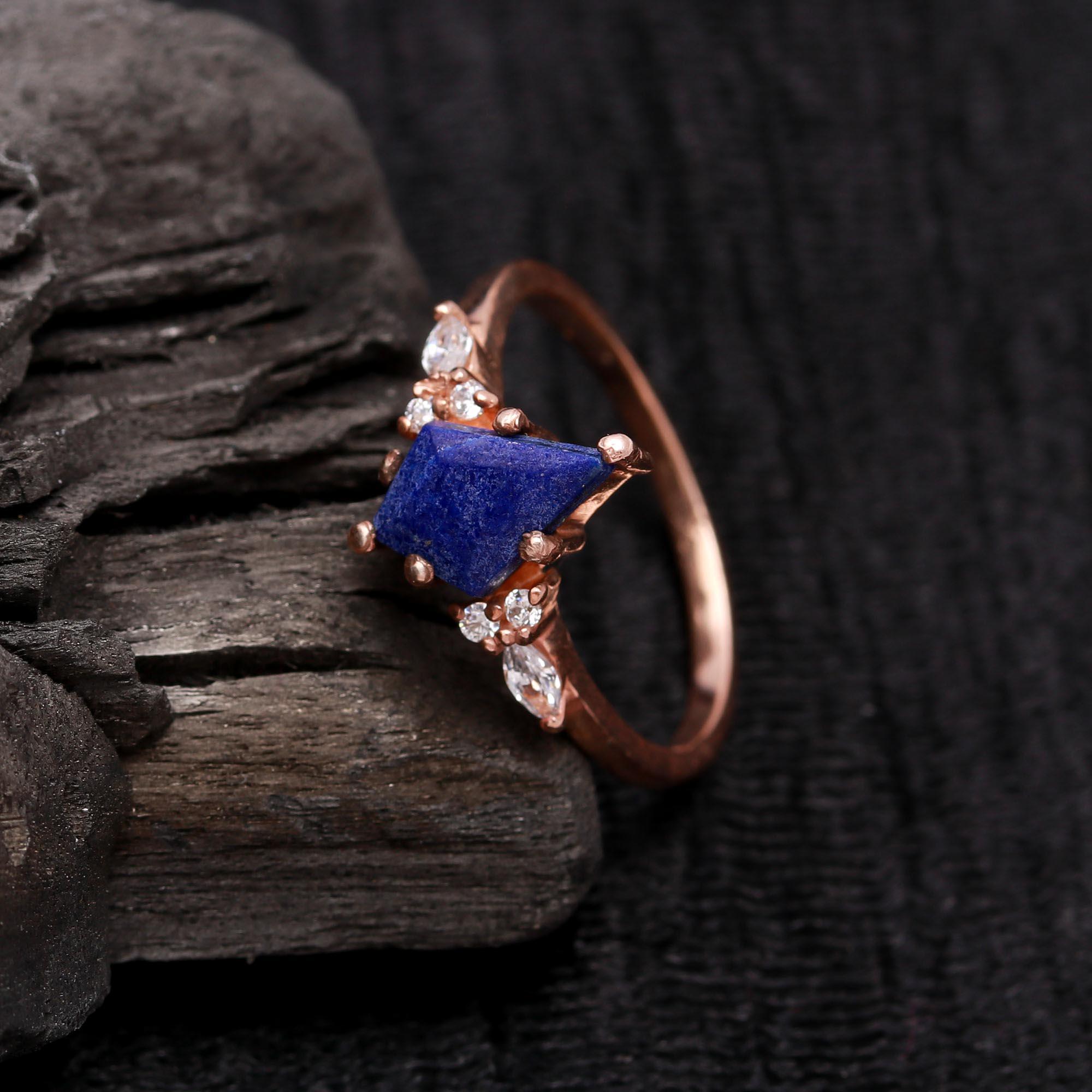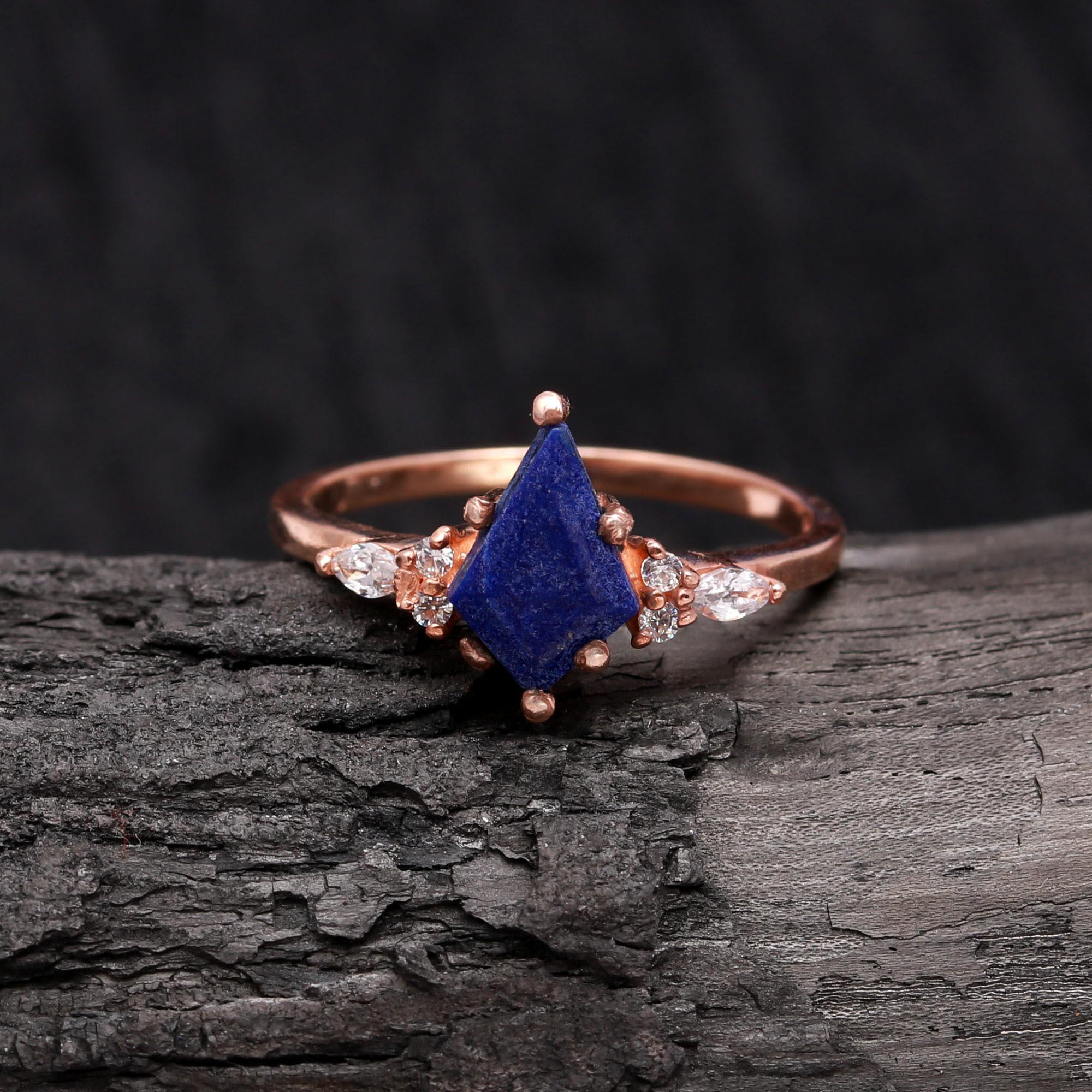 Natural Lapis Lazuli Kite Shape Vintage Ring Solid Silver Rose Gold Plated Jewelry Wedding Gift