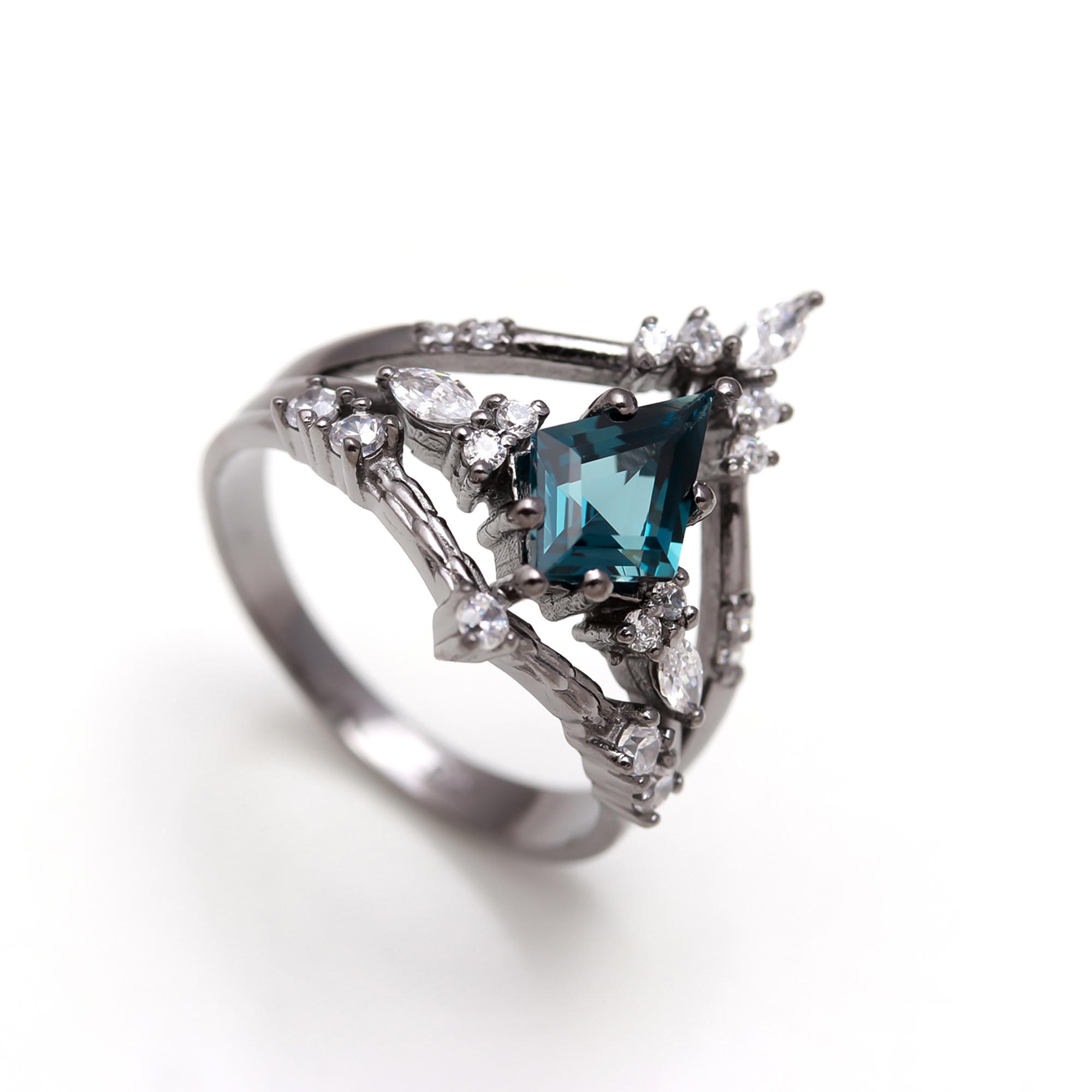 Be the first to review “Natural London Blue Topaz Kite Shape Crown Ring 925 Sterling Silver Black Oxidized Designer Jewelry” Cancel reply