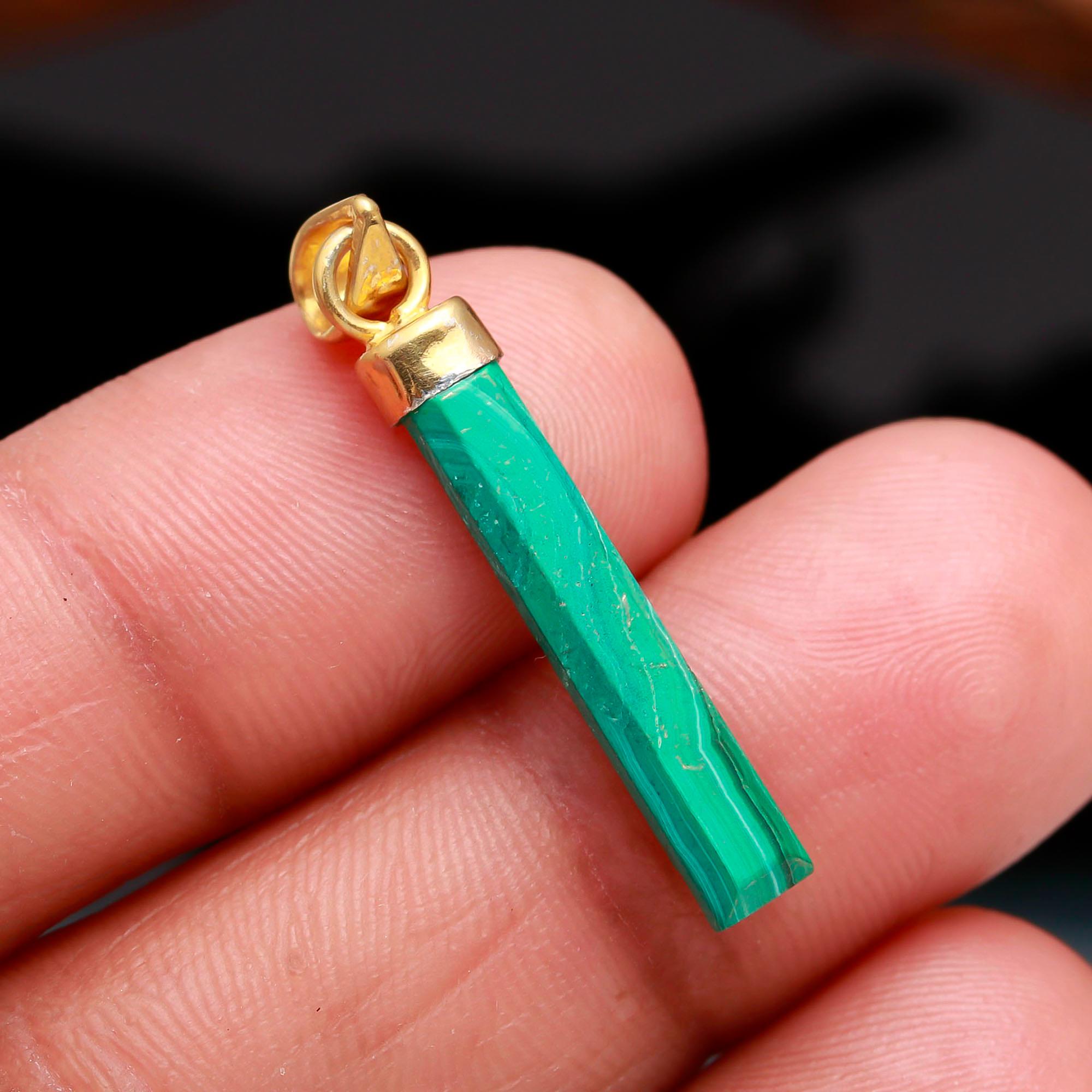 Natural Malachite Baguette Gold Pendant Handmade Jewelry Birthday Gift