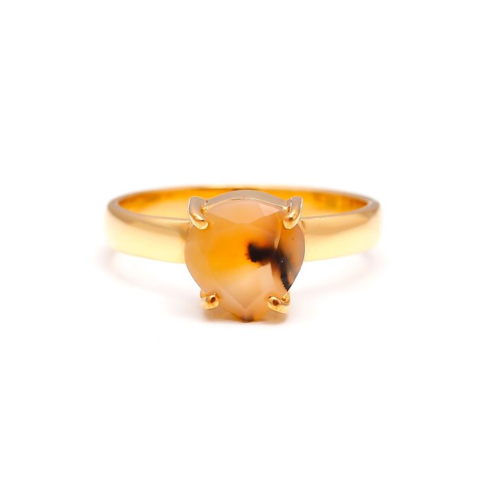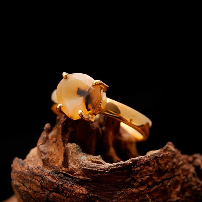 Natural Montana Agate Heart Shape Ring 14K Gold Healing Jewelry For Him