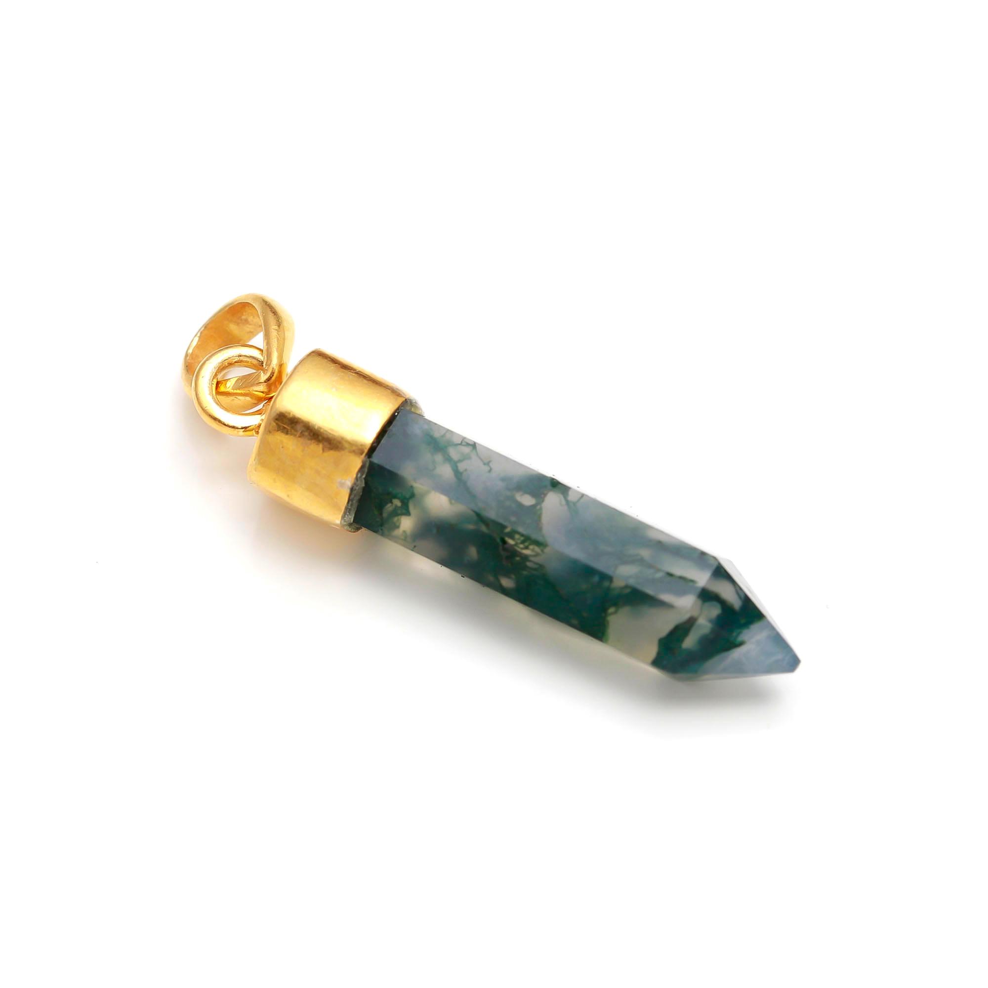 Be the first to review “Natural Moss Agate Pencil Shape Charm Pendant Handmade Gold Jewelry” Cancel reply
