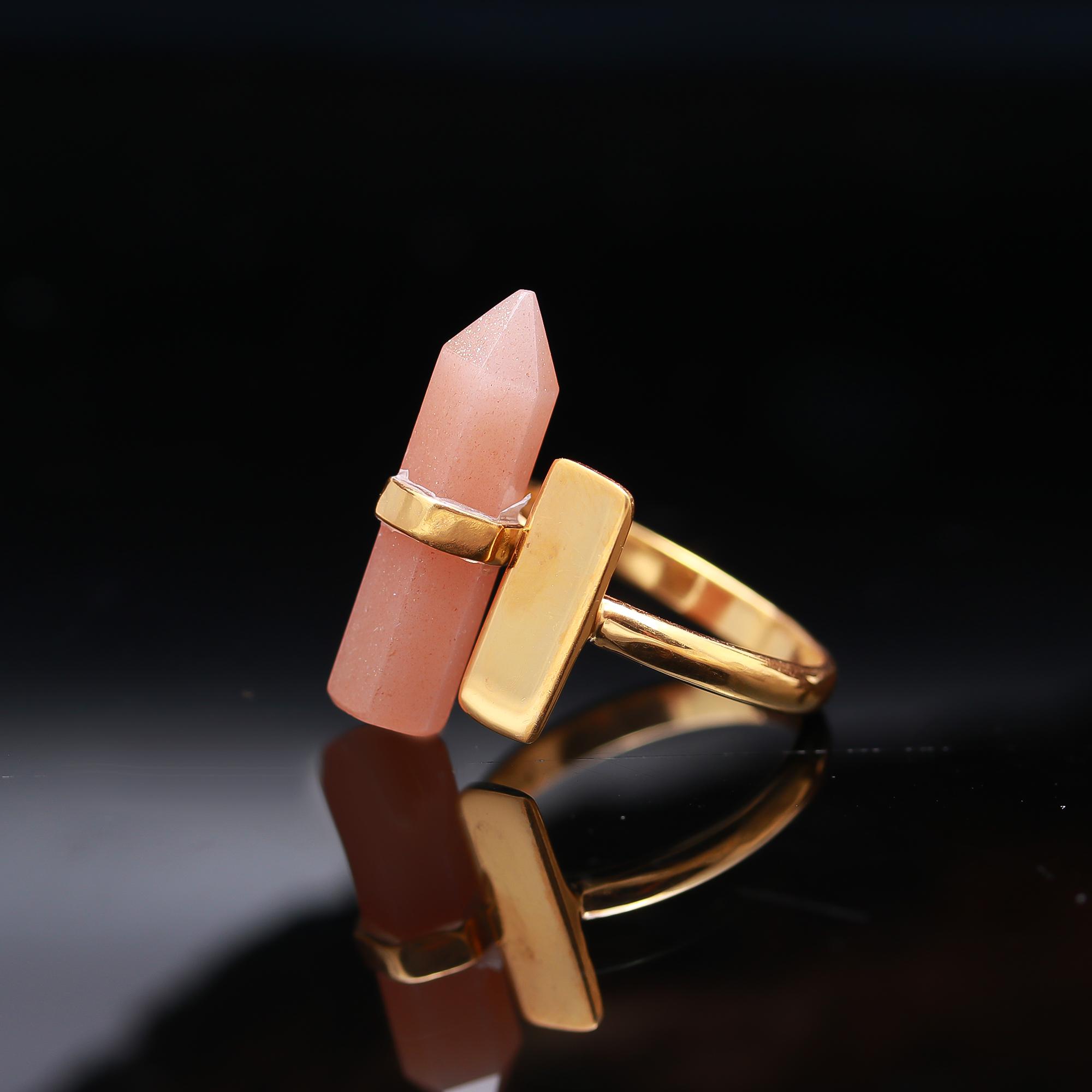 Be the first to review “Natural Peach Moonstone Pencil Ring Statement Gold Jewelry For Her Wedding Gift”