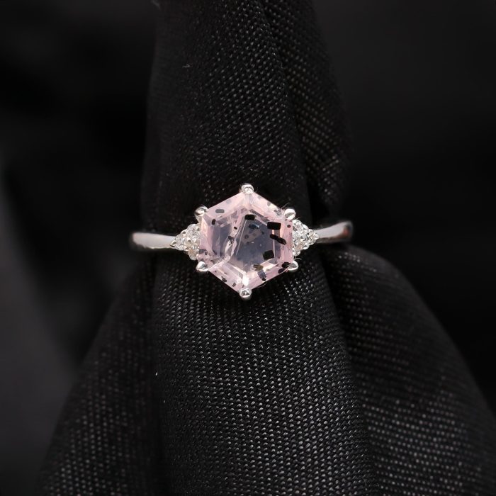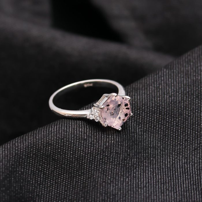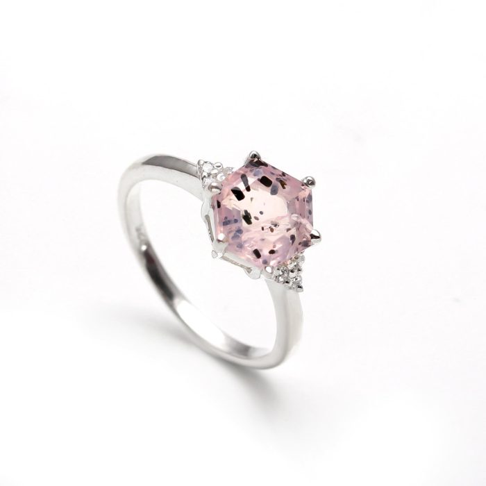 Natural Pink Dot Quartz Hexagon Propose Ring 925 Sterling Silver Jewelry Engagement Gifts