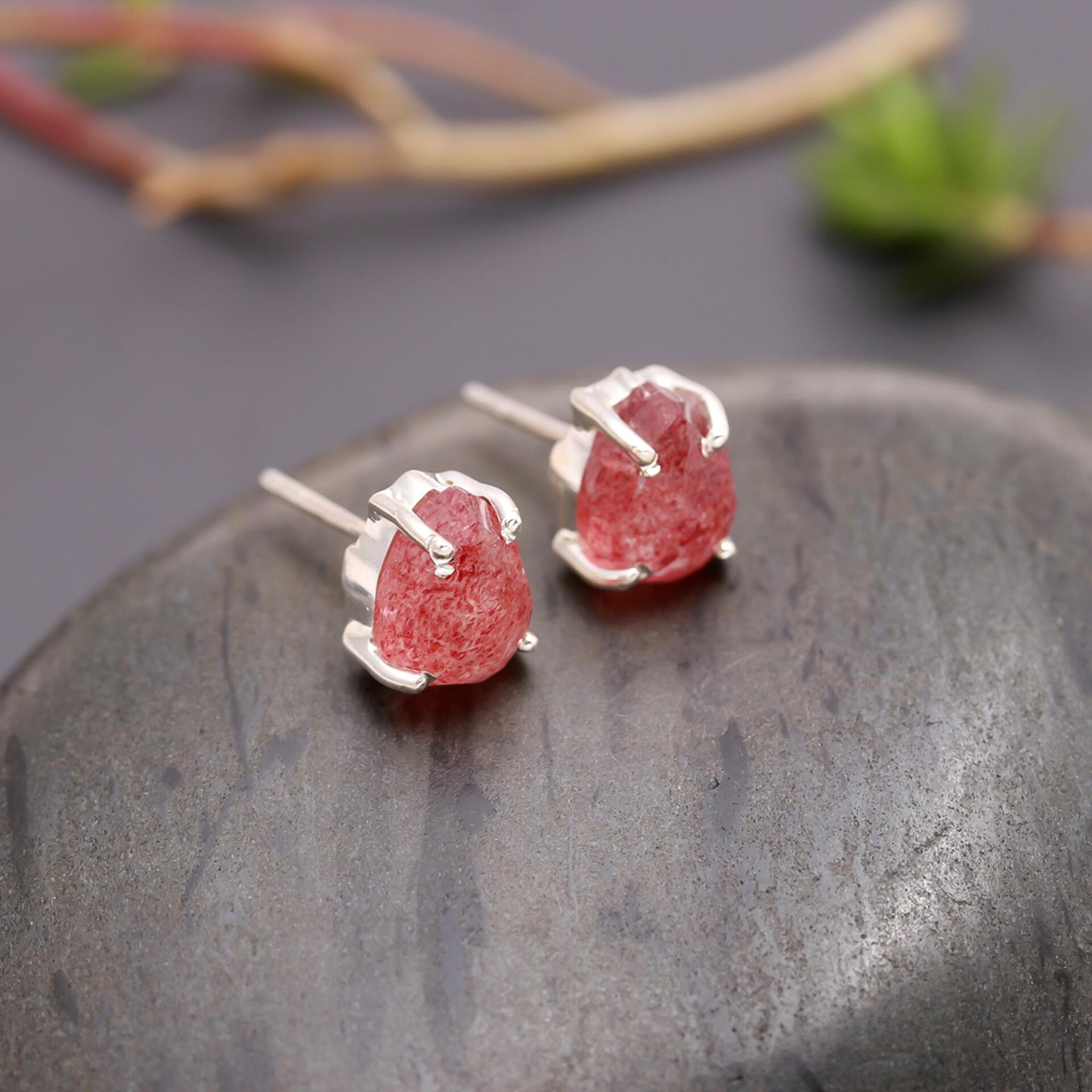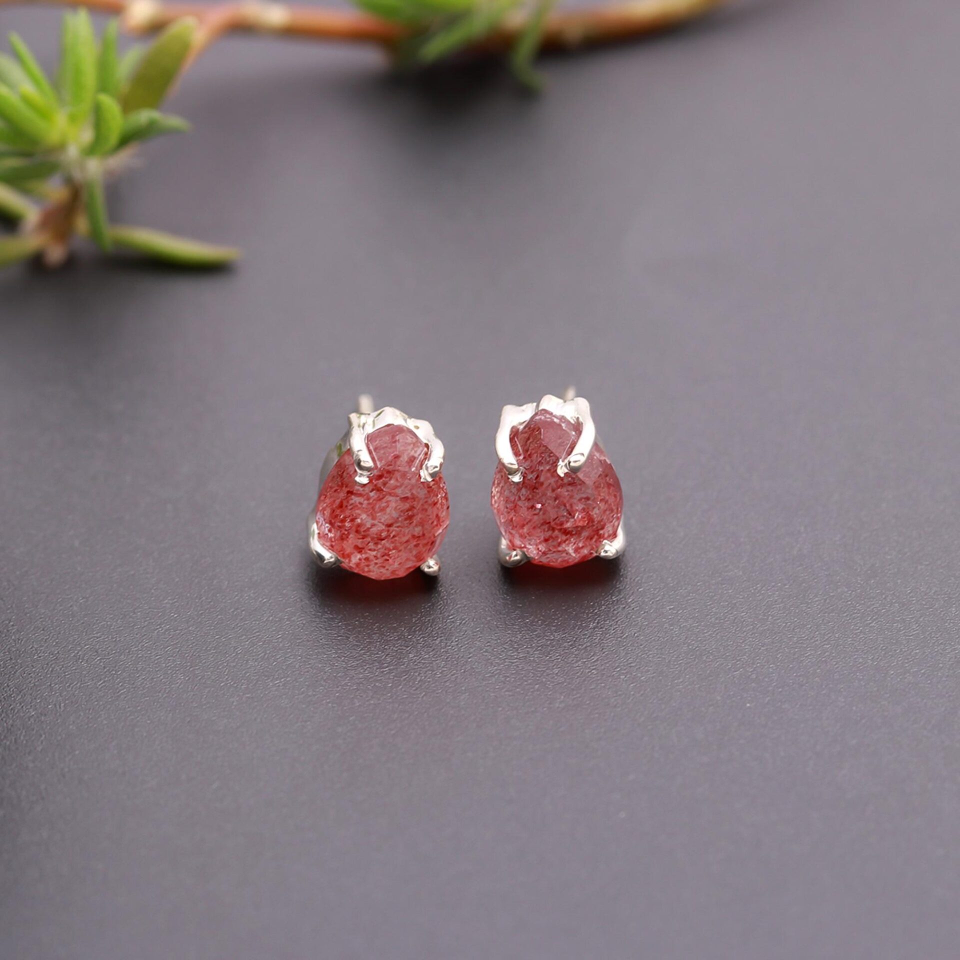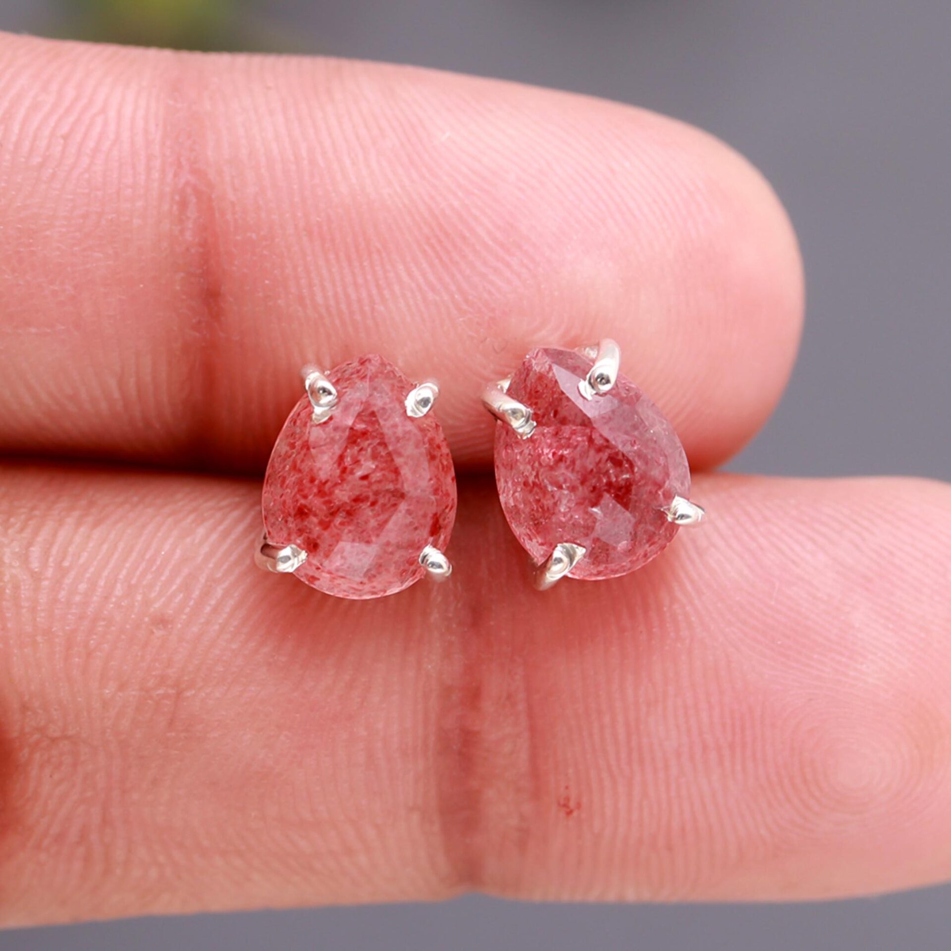 Natural Red Strawberry Pear Studs Earrings, 925 Sterling Silver Delicate Jewelry, Minimalist Earrings, Healing Earrings, Boho Birthday Gift