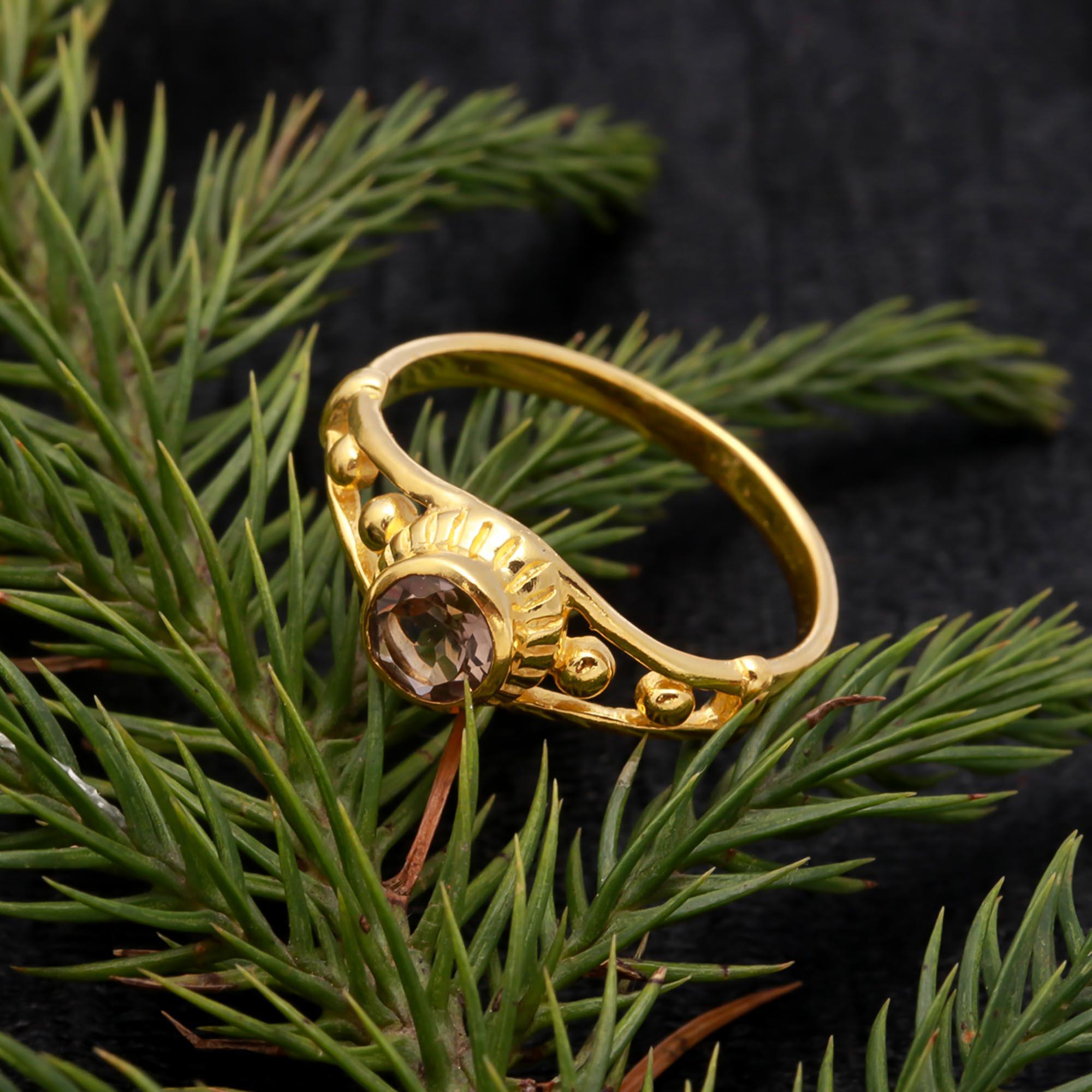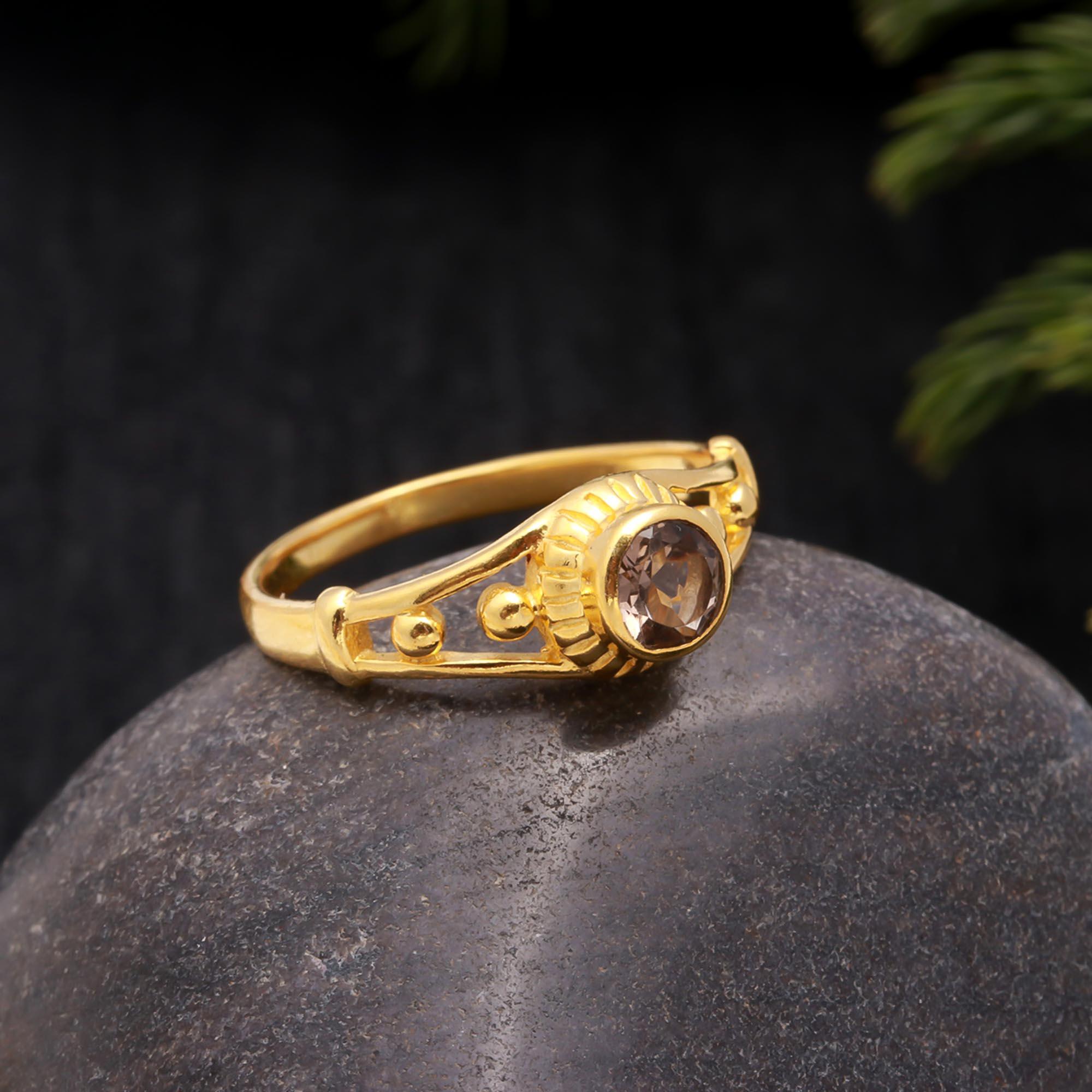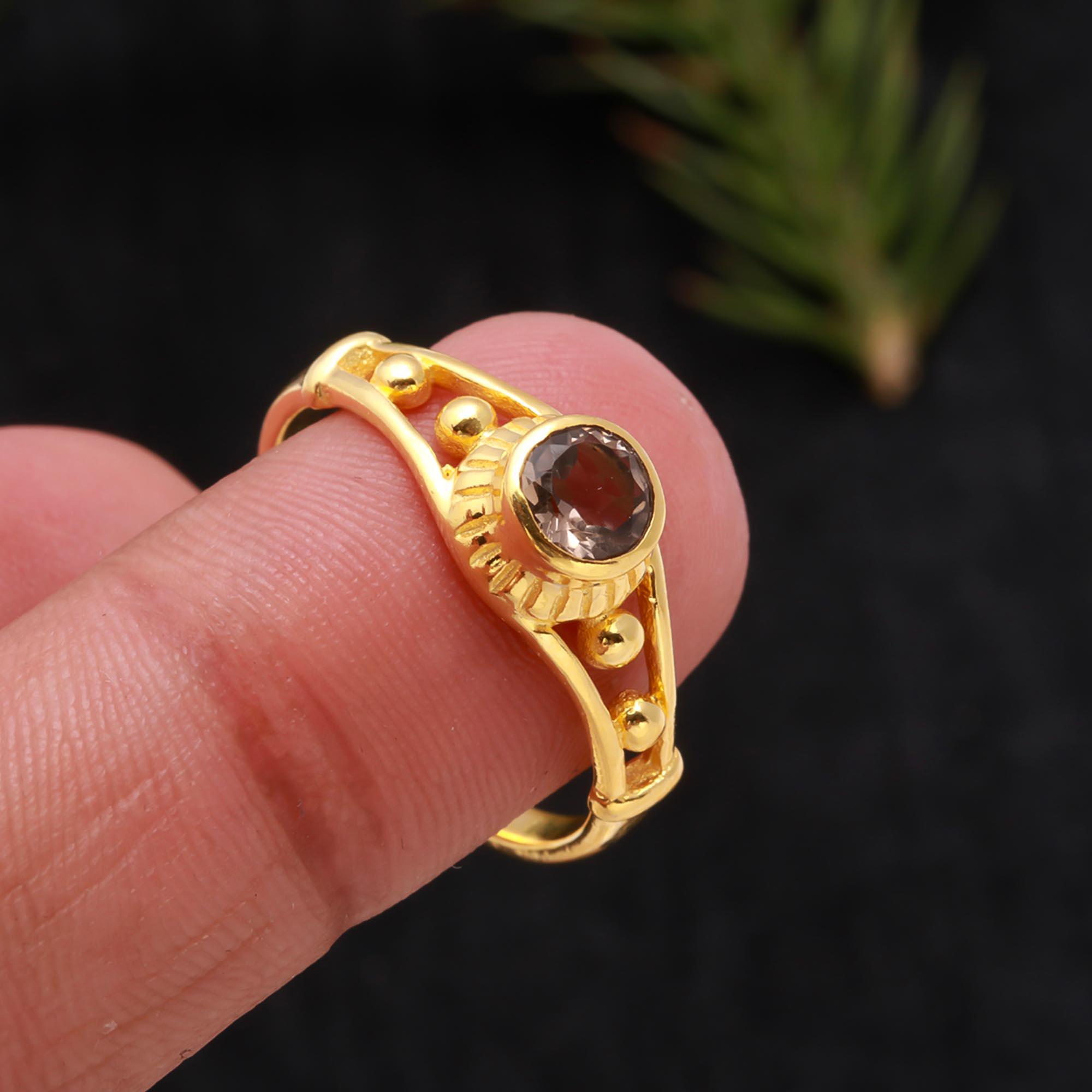 Natural Smoky Quartz Round Ring, 14K Gold Statement Jewelry, Minimalist Ring, Vintage Gold Ring, Birthday Gift, Valentine day Gift For Her,