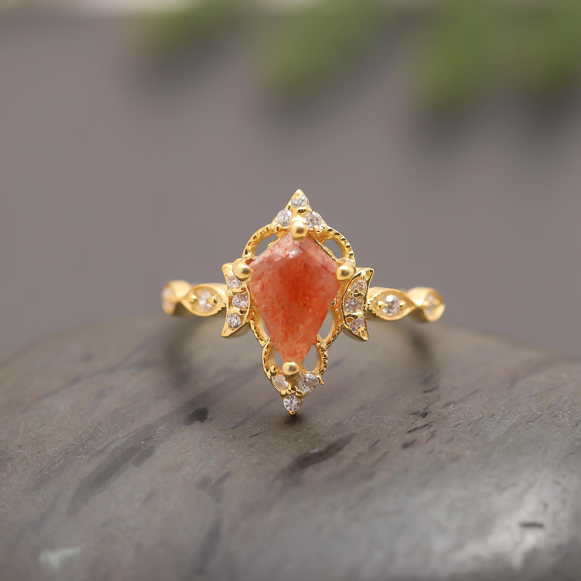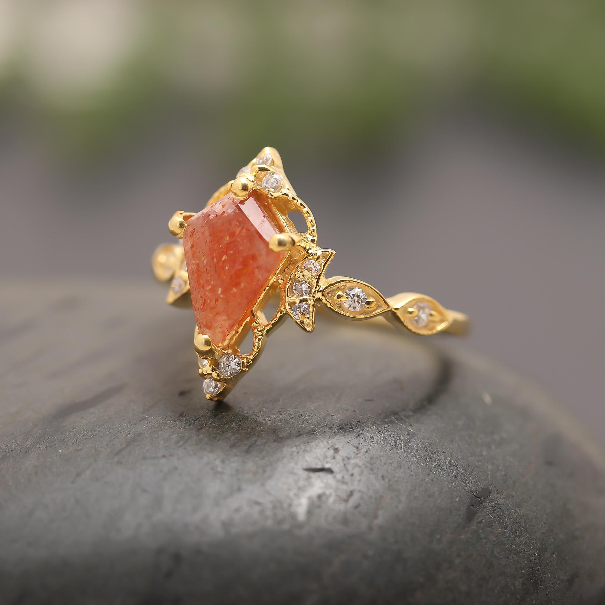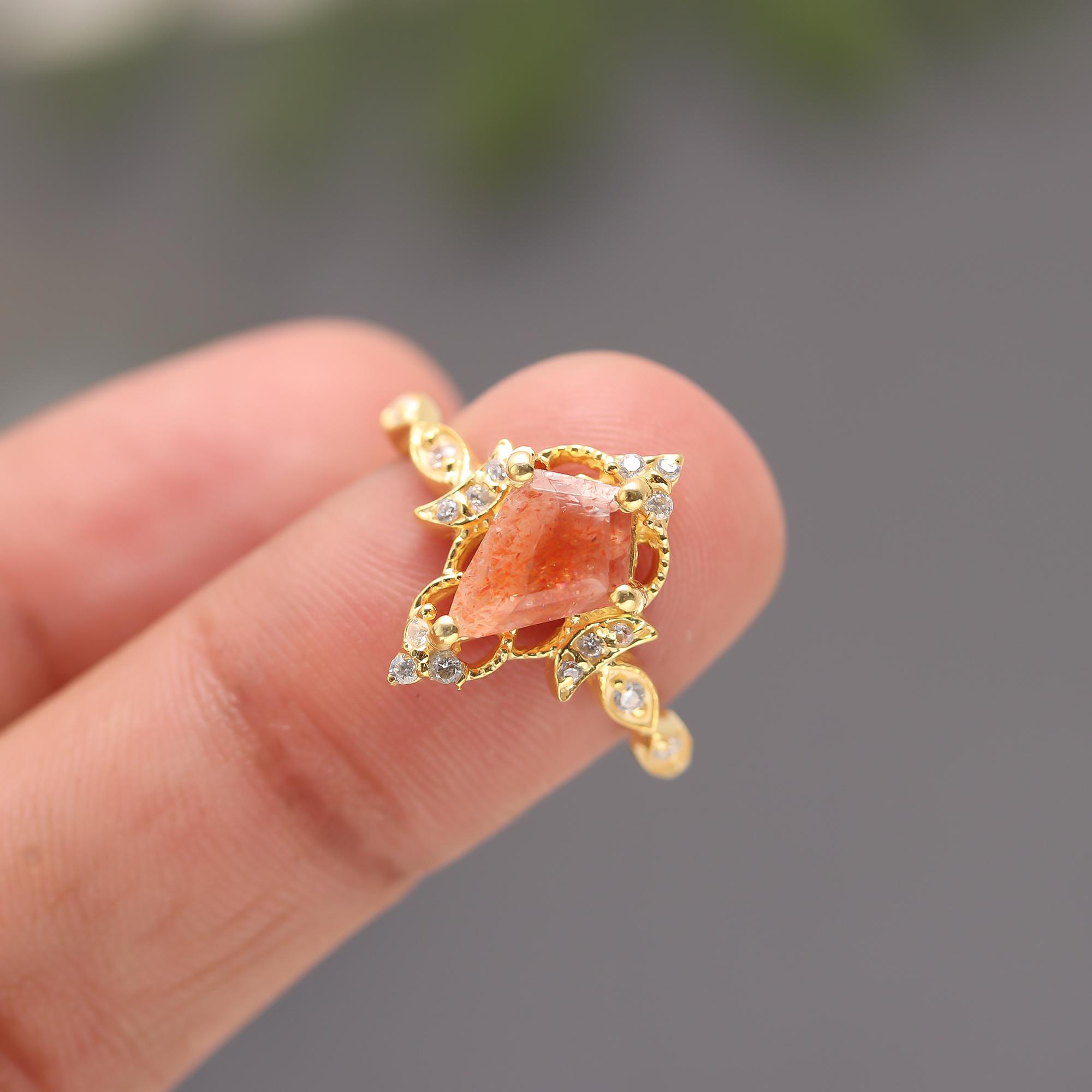 Natural Sunstone Kite Shape Ring, 14K Gold Lightweight Jewelry, Statement Ring, Engagement Ring, Promise Ring, Bohemian Ring, Birthday Gift