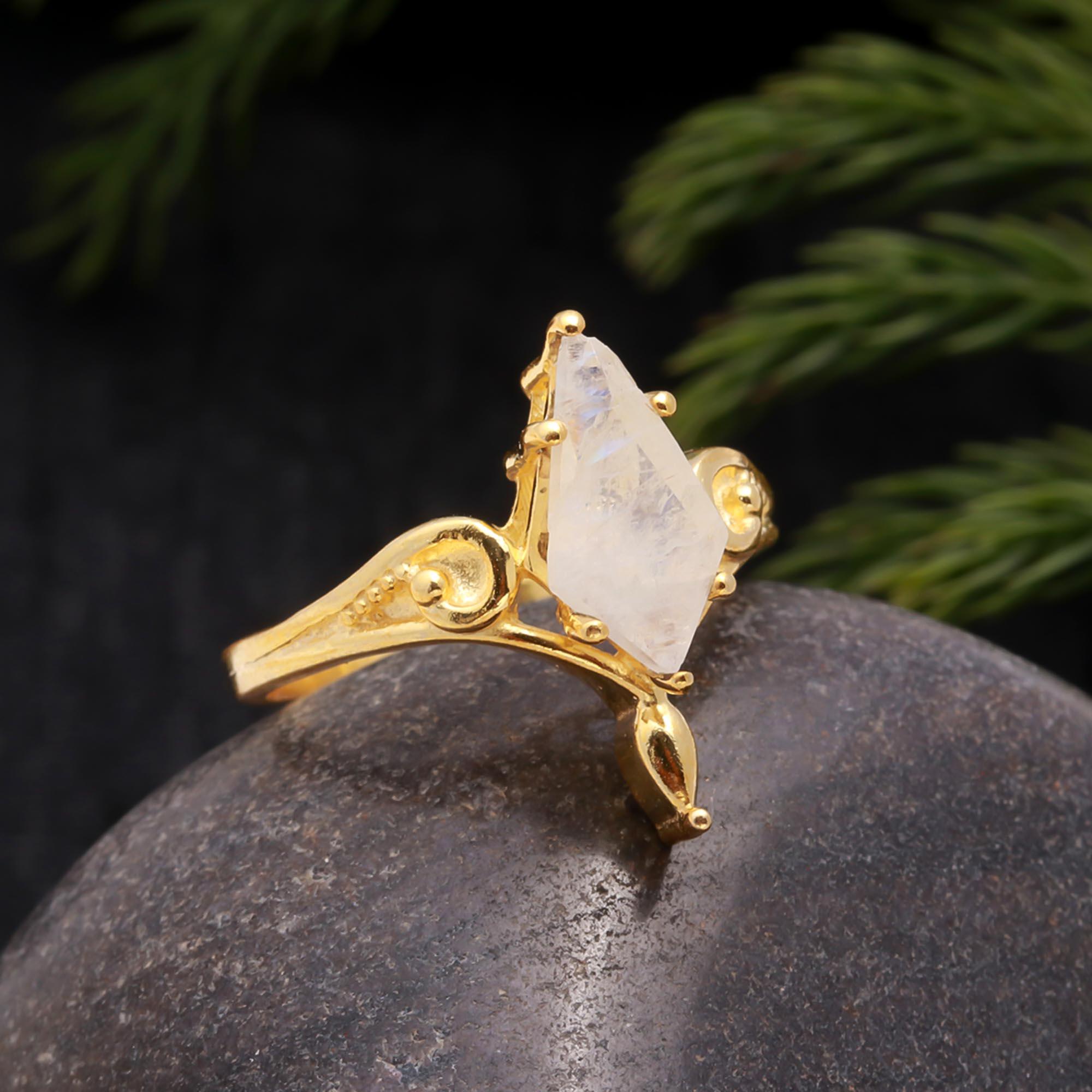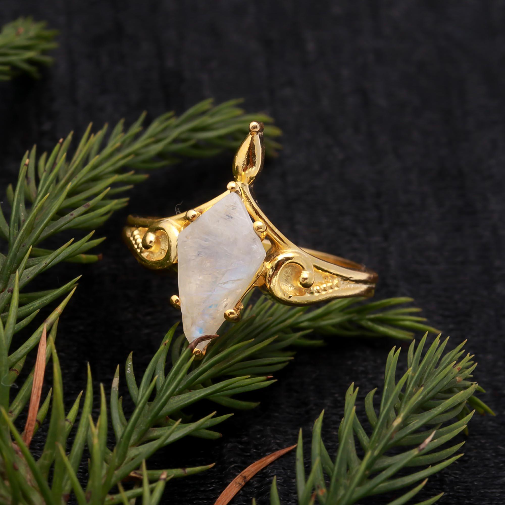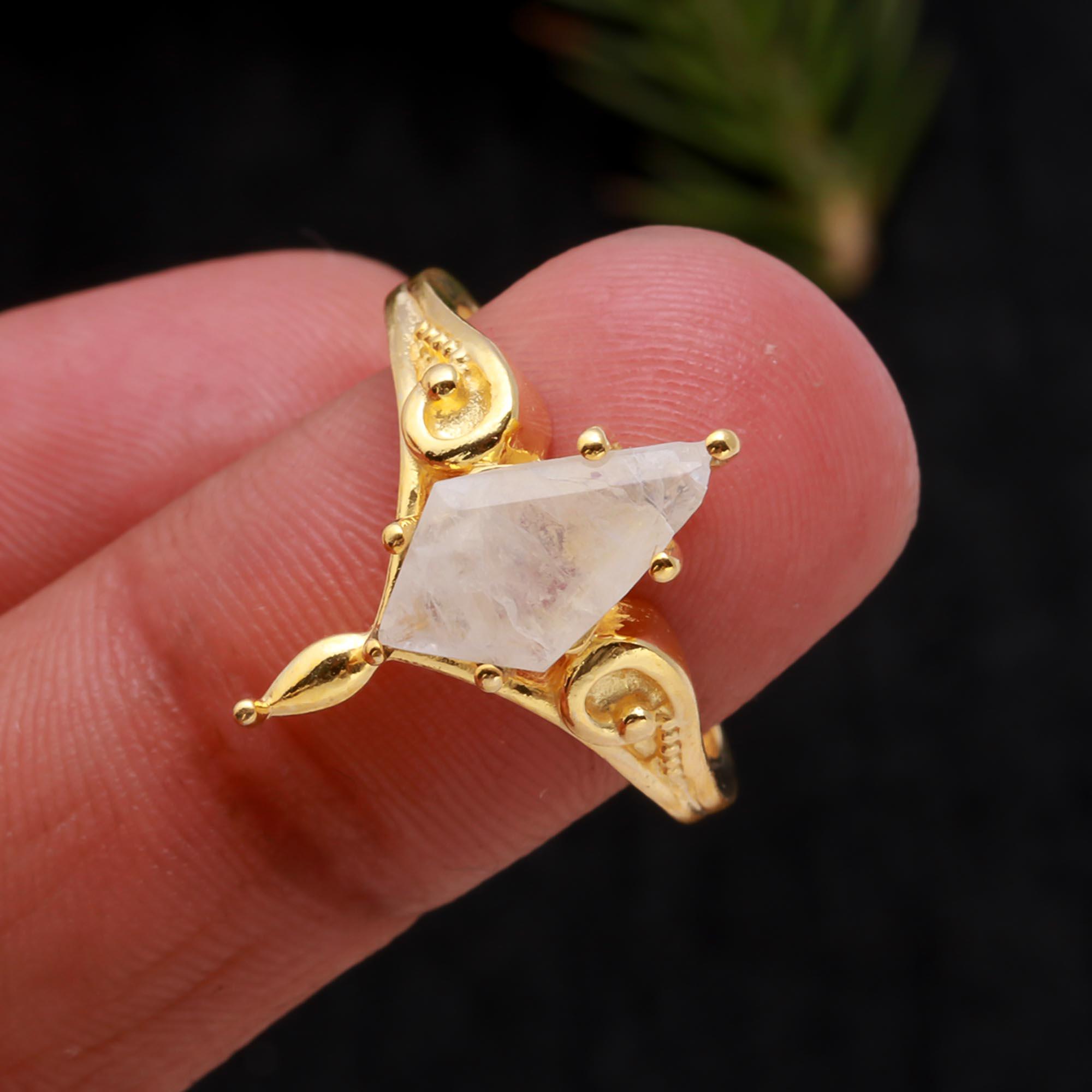 Natural White Moonstone Kite Shape Ring, 14K Gold Lightweight Jewelry, Wedding Ring, Vintage Ring, Engagement Ring, Birthday Gift For Lovers